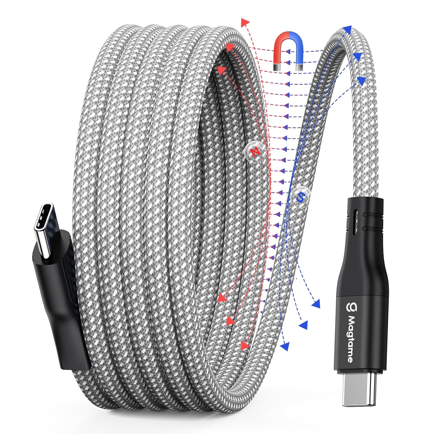 - Magtame Magnetic USB-C Cable (Retractable Coiled) – 3.3ft Black, 30W Fast Charging, Nylon Braided