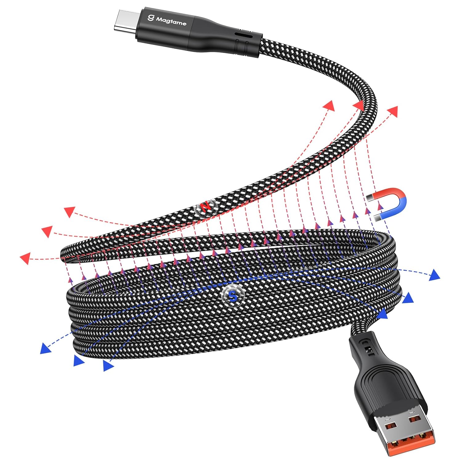 - Magtame 20Gbps 8K Magnetic USB-C to USB-C (1.5m coiled, 140W) cable for fast charging and data