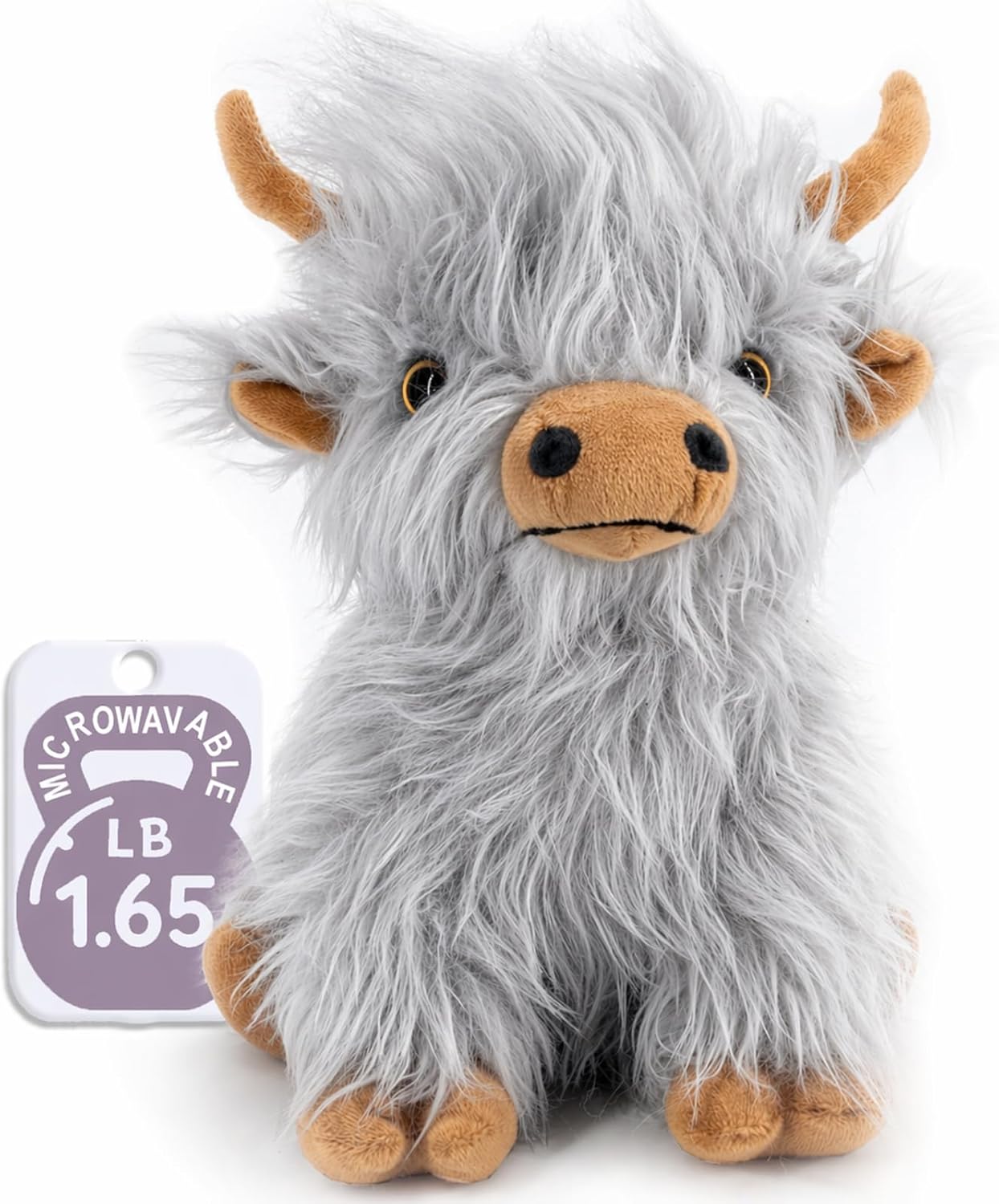 Marysun Highland Cow Stuffed Animal Toy (Gray) – microwavable, lavender-scented cuddly gift