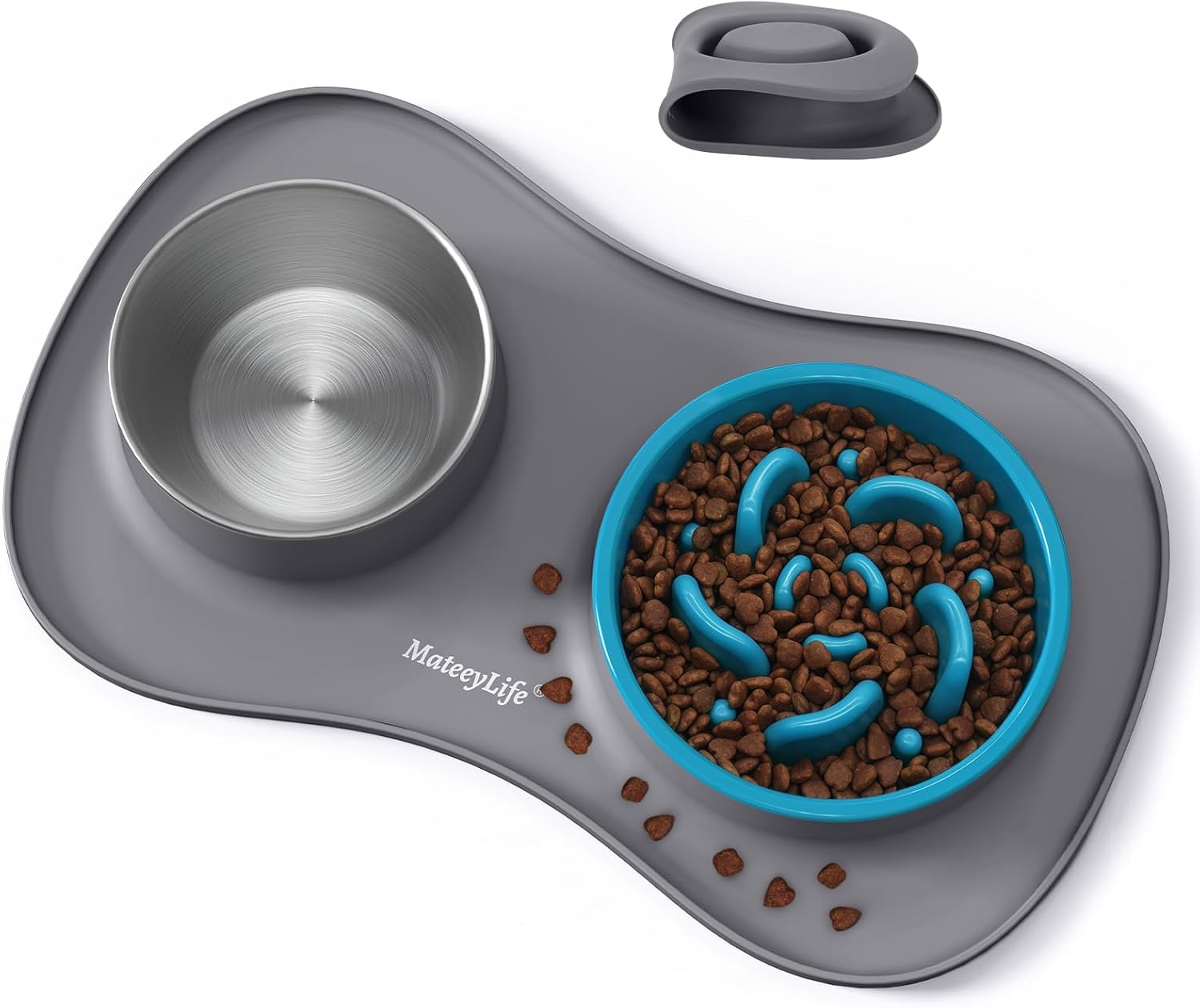 - MateeyLife Dog Bowl Slow Feeder Set 3 in 1 (Stainless Steel Bowls & Non-Spill Silicone Mat)