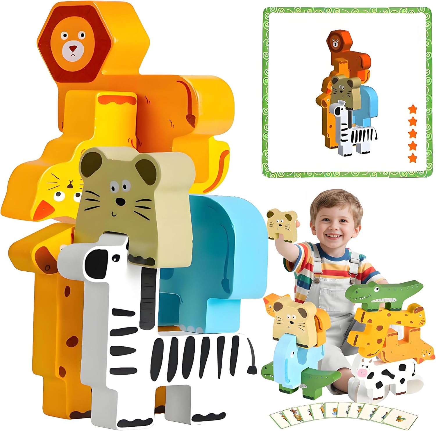 - Wooden Montessori Animal Stacking Blocks for 1–4 Year Olds (toddler wooden stacking toy set)