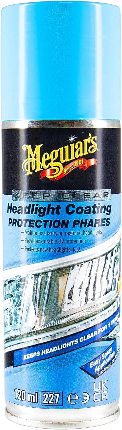 Meguiar's Keep Clear Headlight Coating is a dedicated spray-on coating designed to protect and maintain the clarity of headlights, whether they're new or restored. On the page, it’s pitched as a durable UV-protective coating that helps headlights look clearer for longer, with an easy aerosol application. If you’re aiming to slow down yellowing and hazing caused by sun exposure, this product presents a straightforward option to keep the lens appearance more like new between more intensive restorations.