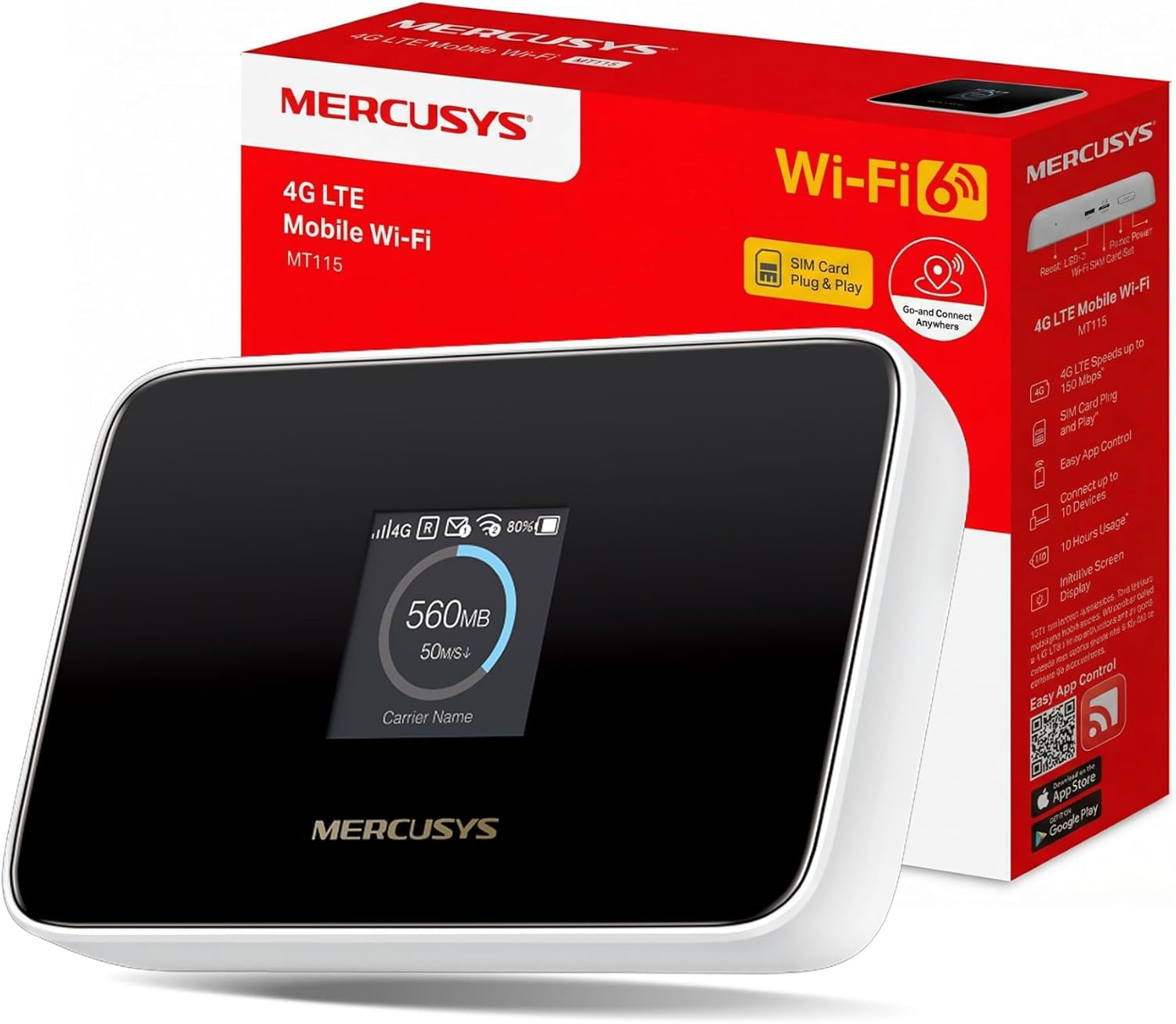 If you want a portable 4G LTE WiFi router with Wi‑Fi 6 (AX300) and the ability to share internet with up to 10 devices, the MERCUSYS MT115 looks like a practical, travel-friendly option. The battery and the “stay within your data budget” focus are especially relevant if your plan has a monthly cap and you’d rather monitor usage than guess.