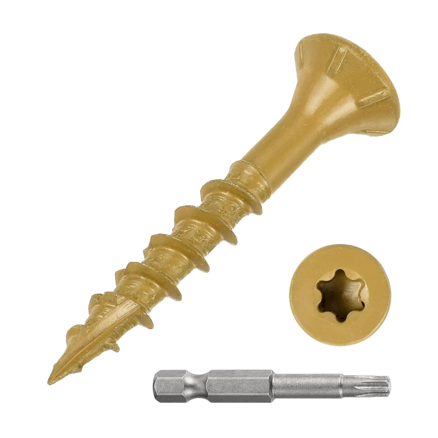METALLIXITY Deck Screws #8 x 1-1/4" T25 Torx (Tan) – 500 pack with T25 bit