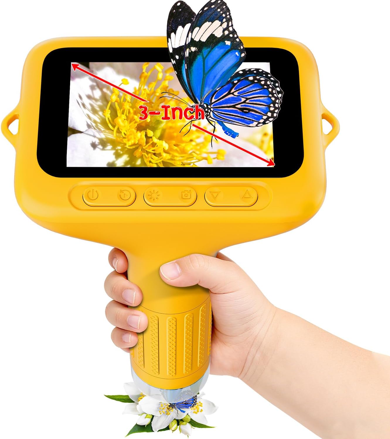 Microscope for Kids 3-inch Digital Handheld Microscope (1000X) with Adjustable LED Light – Yellow
