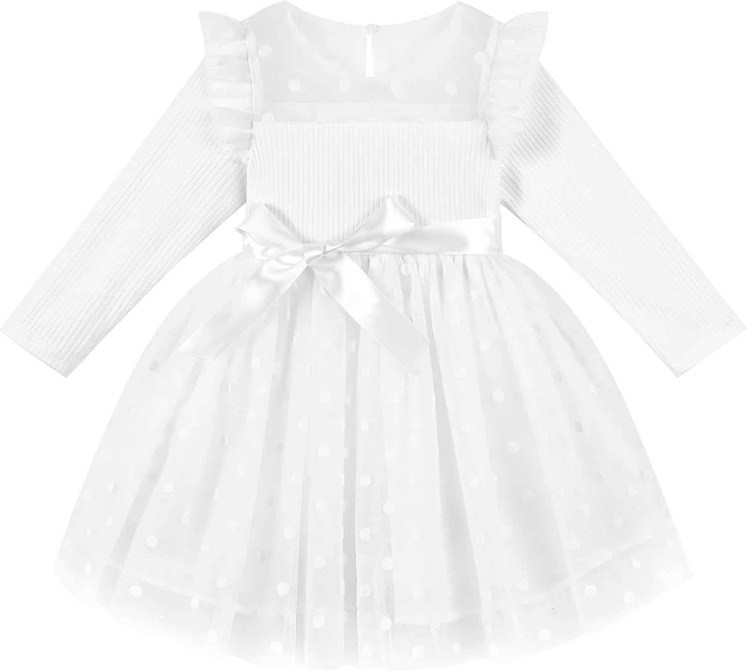 The visual design is the main draw. You get a ruffled long-sleeve look and dot decoration, plus a knit ribbed top patchwork style with a tulle hemline. In practice, this kind of mix often reads as “dress-up” even when your child is just heading out to a park or family event. If you’re planning a birthday, school event, or a festive get-together, it’s the sort of piece that can make a simple day look more styled.