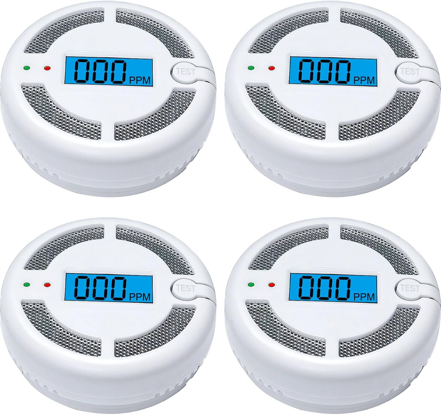 Mini Battery-Powered Carbon Monoxide Detector (CO Alarm) with LCD Display, EN 50291 Compliant, 4 Pack