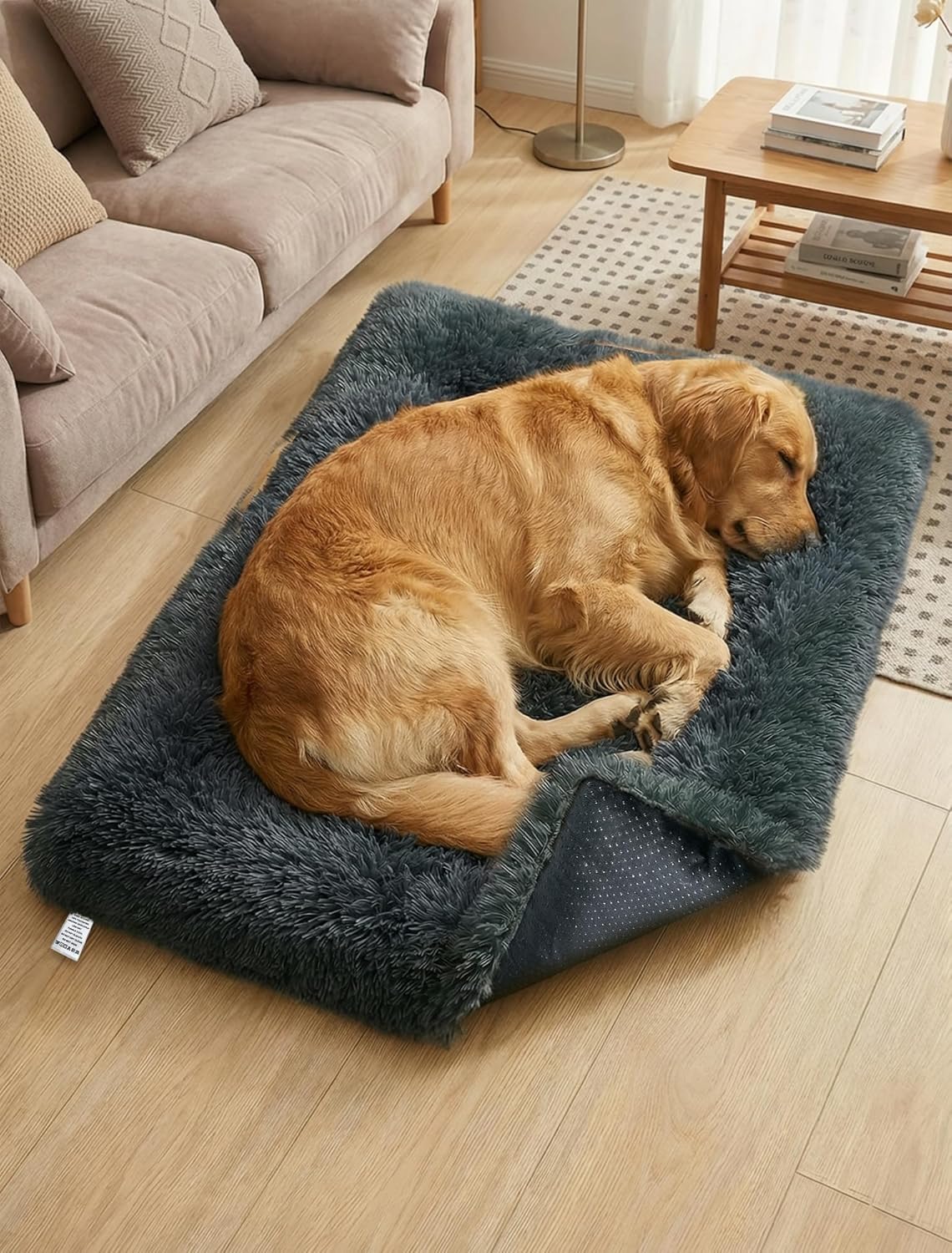 First, the bottom is described as waterproof and dirt-resistant, with a tear-resistant non-slip rubber bead base. In practical terms, that usually means the mattress is less likely to slide around on floors, and it should be easier to wipe/handle when the crate area gets messy. Still, it’s worth tempering expectations: the description also notes that it doesn’t mean the cushion won’t move a little bit from its place.
