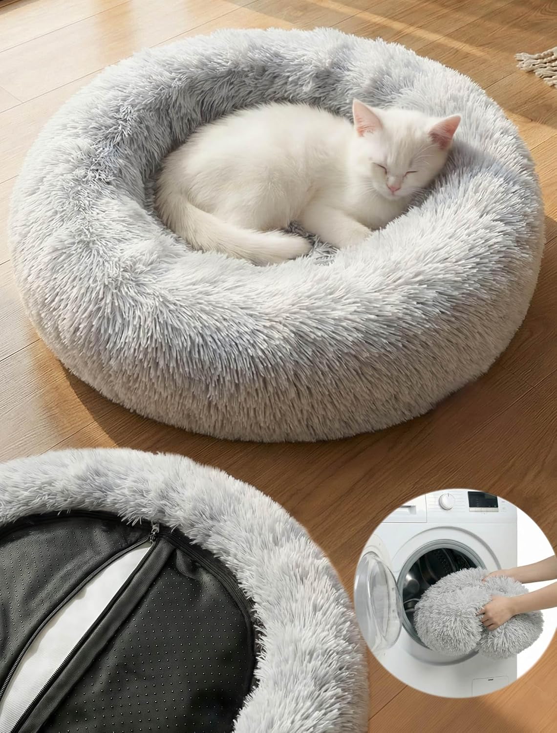 It’s a solid pick if you want a small donut bed built around easier cleaning (removable, zipped cover) and stability on hard floors (waterproof, non-slip base). The comfort design also makes sense for pets that curl up and for those who benefit from a raised rim.