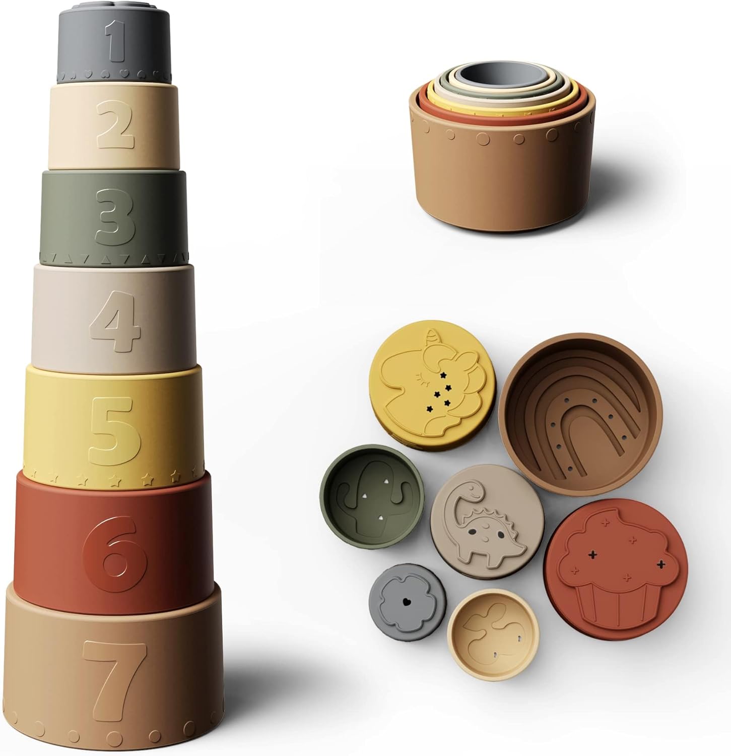 Moonkie’s 7-piece silicone stacking cups toy is built around a pretty simple idea: babies learn by grabbing, squeezing, chewing and trying again. On paper, these cups tick a lot of boxes at once. They’re designed for stacking play, but they also double as a baby teether, so the same items can cover an activity session and a comfort/chewing moment.