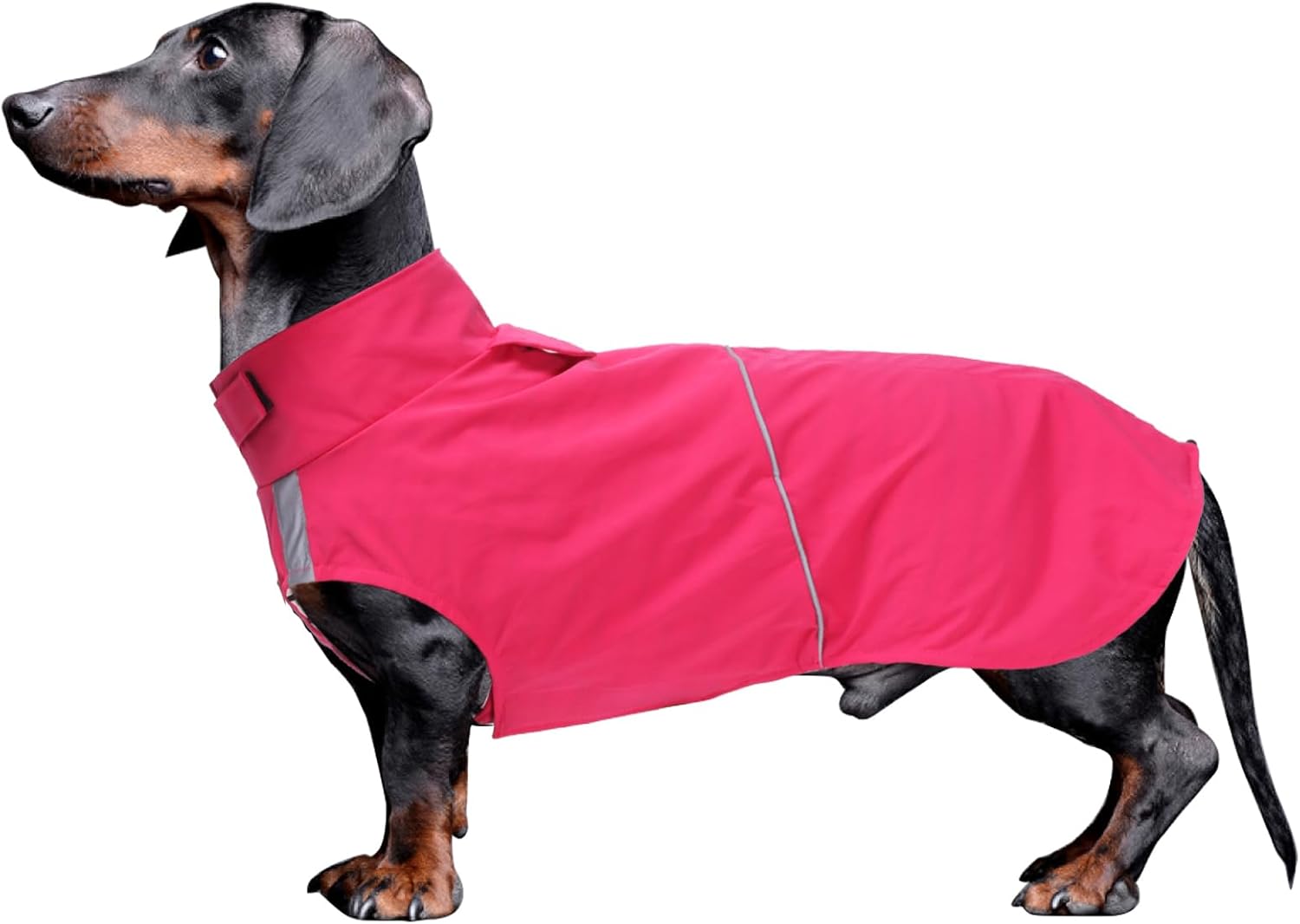 Morezi Dachshund coat waterproof dog raincoat with reflective stripe and belly protection (Pink) – size XS