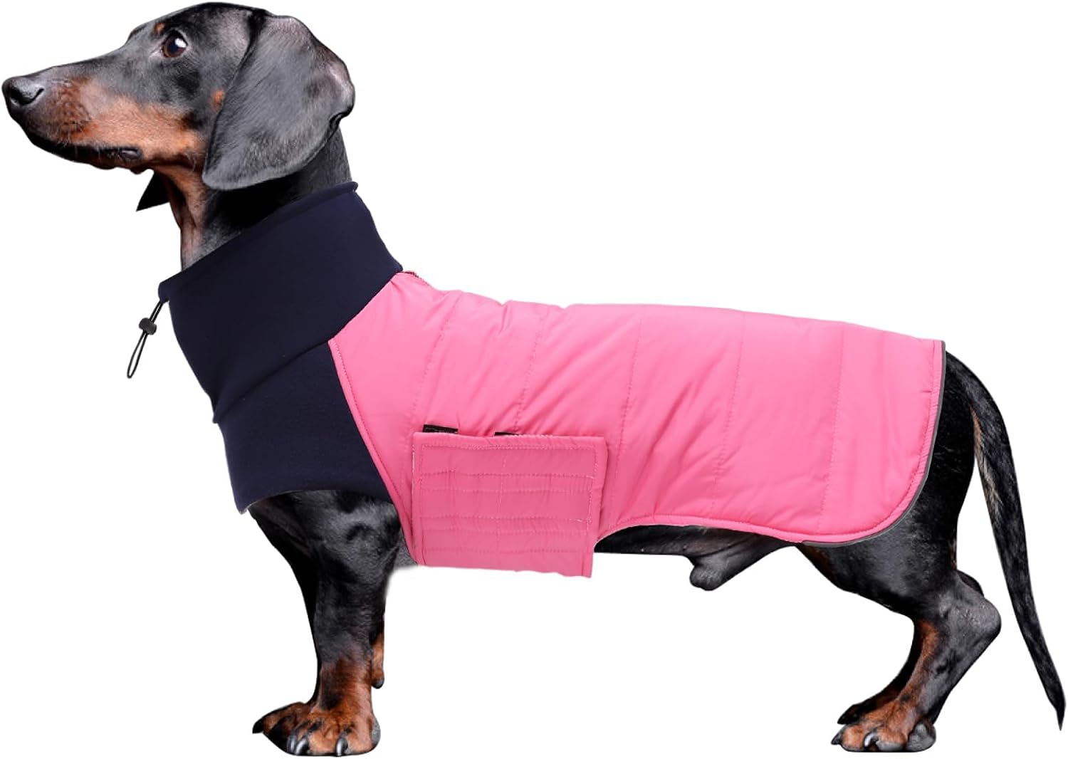 Morezi Dachshund sausage dog coat (reversible) with padded lining and high collar – Pink – S