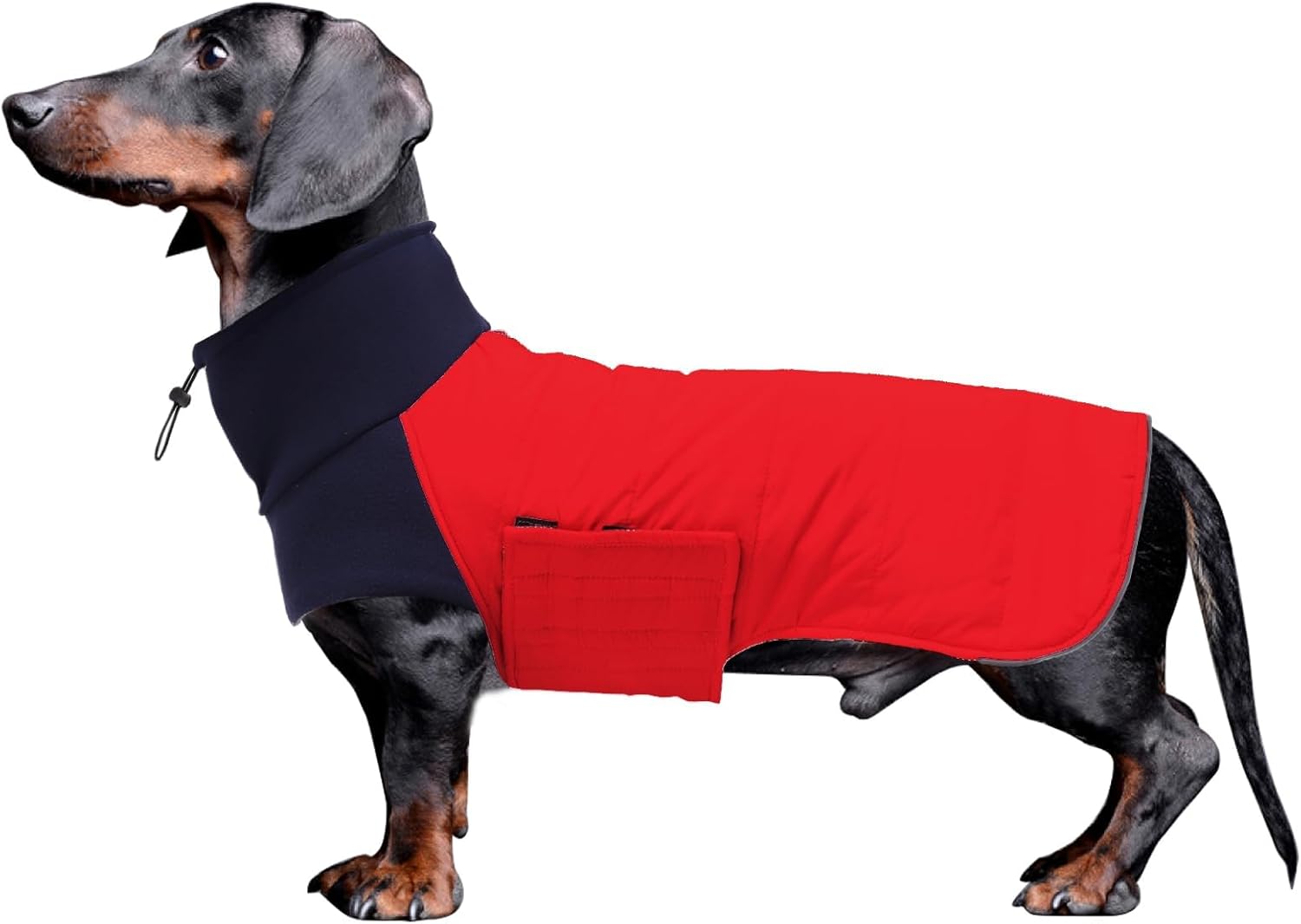 Morezi Dachshund sausage jacket dog coat (reversible) in Red, padded cotton lining, high collar – size XS