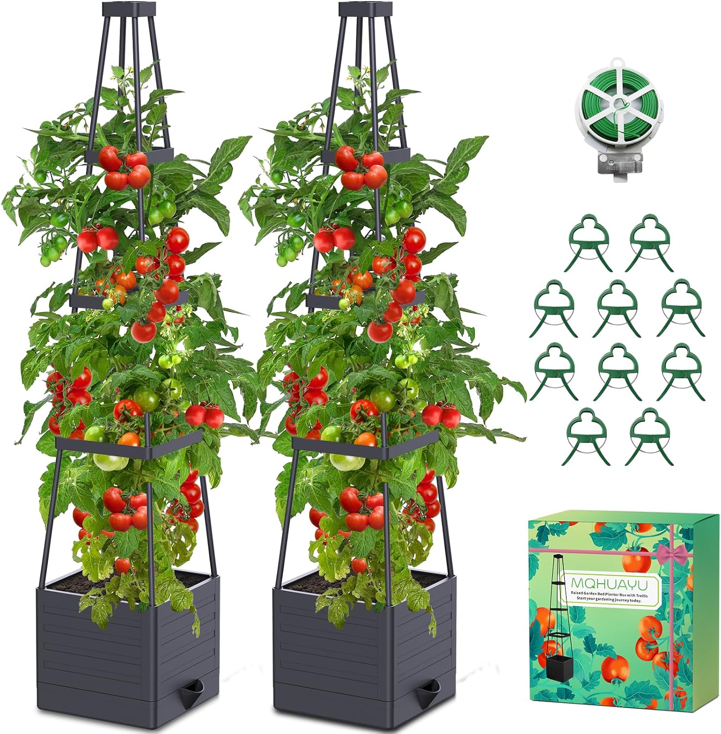 MQHUAYU Raised Beds for Garden with Trellis (2-Pack) – 18L Self-Watering Plant Boxes with 57" Trellis