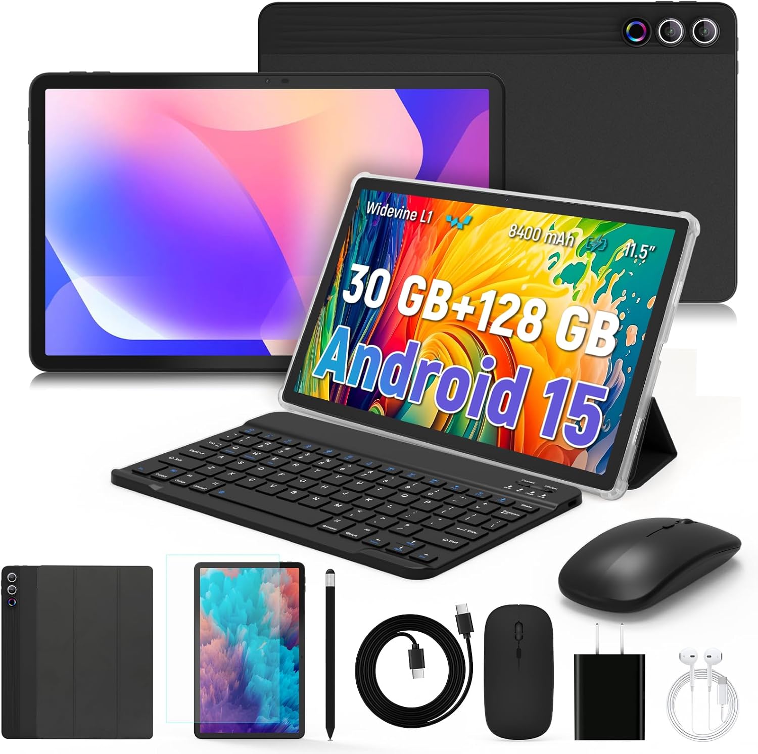 MUISOO 11.5-inch Android 15 Tablet (Octa-Core, 30GB RAM/128GB ROM, 5G WiFi 6) with Keyboard, Mouse & Case
