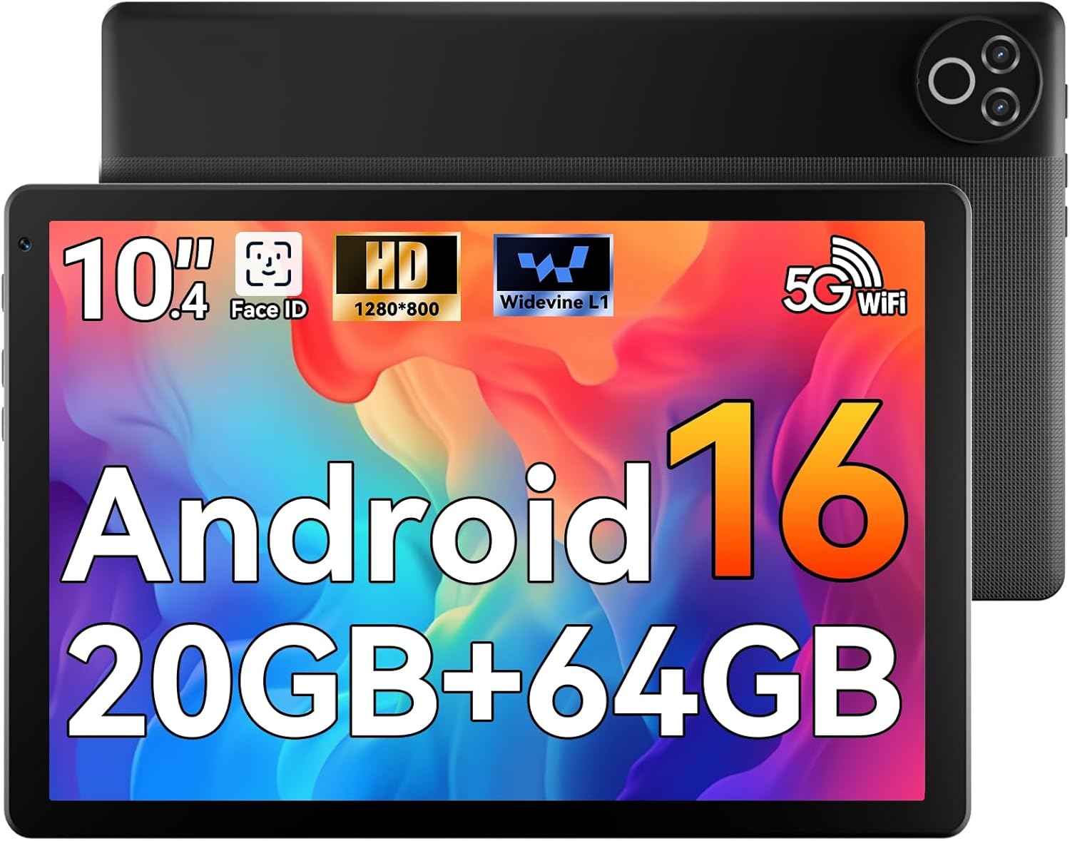 MUISOO Android 16 10.4-inch Tablet (20GB RAM + 64GB ROM, WiFi 6) – 5000mAh, Dual Cameras, Widevine L1