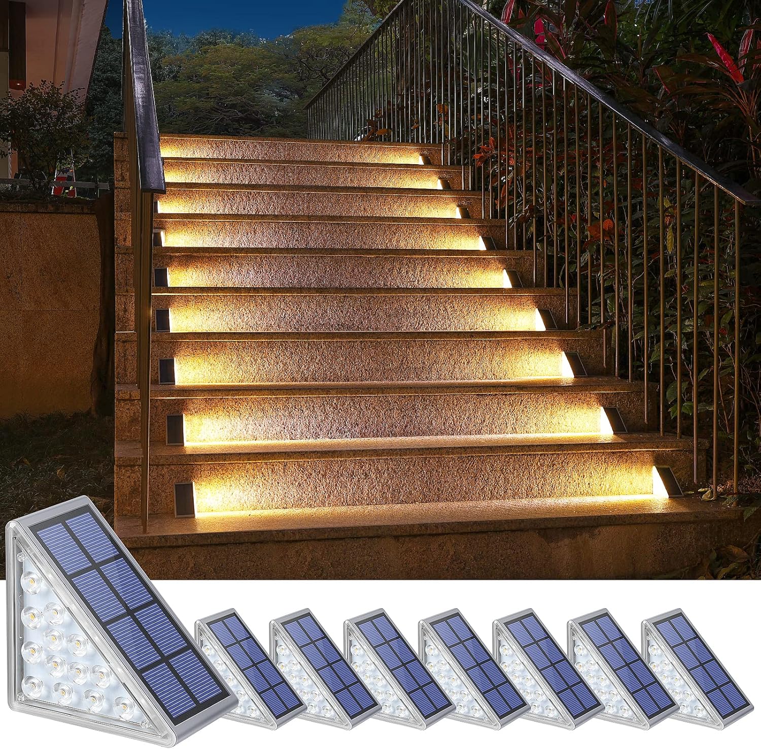 NIORSUN Solar Step Lights 8 Pack (IP67) – 3000K Warm White Outdoor Stair & Deck Lights