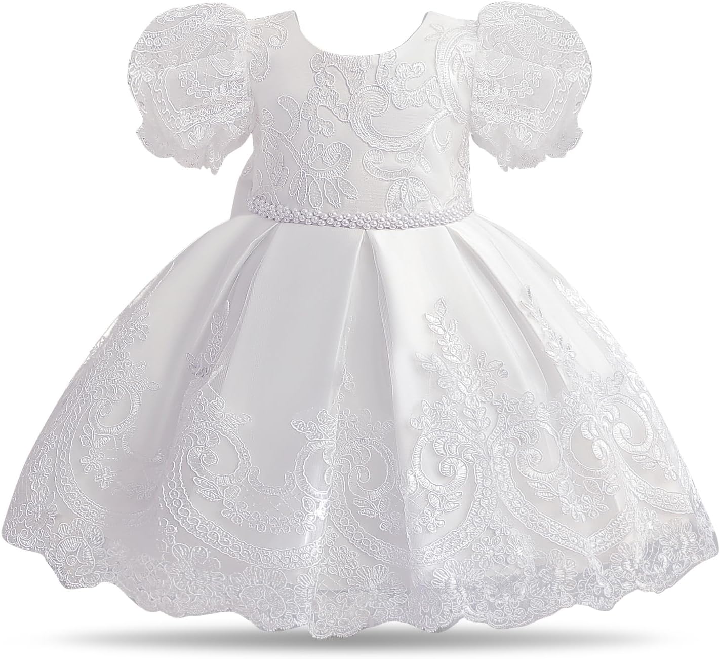 It suits families who are buying a special-occasion outfit and want something visually “princess” without going overly formal or costume-heavy. If you’re shopping for a baby girl who’ll be in a pageant, christening, or a formal family gathering, the mix of lace styling, bow, and knee-length silhouette is likely to hit the brief.