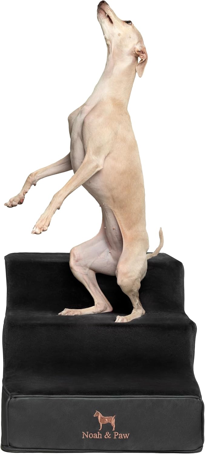 - Noah & Paw Dog Stairs Leather Collection – 17" Extra Wide Bed Ramp, Durable 4-Step Foam Dog Stairs