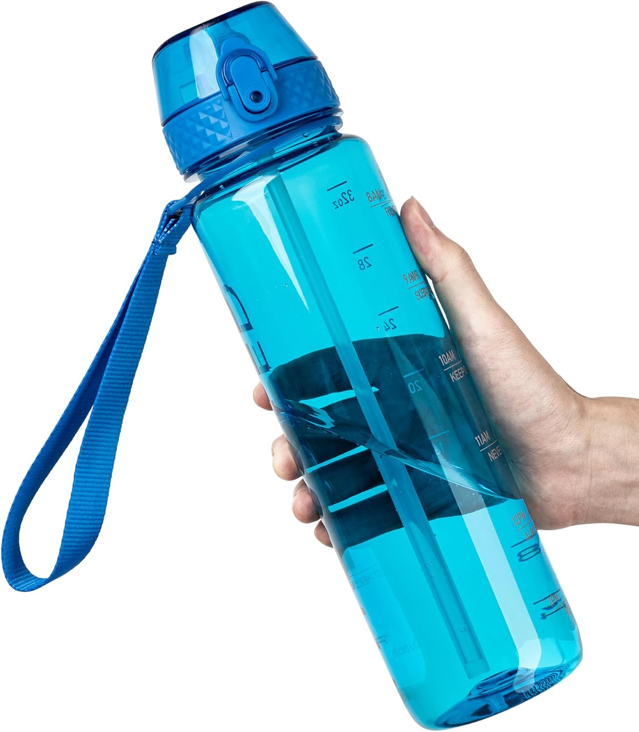 This OLDLEY 1 litre sports water bottle is designed for day-to-day sipping with a straw lid, plus a couple of features that aim to make hydration feel a bit more “managed” than a plain bottle. On paper, it ticks the boxes people usually care about: food-grade Tritan construction, a leak-resistant straw top with a safety lock, and one-handed drinking.