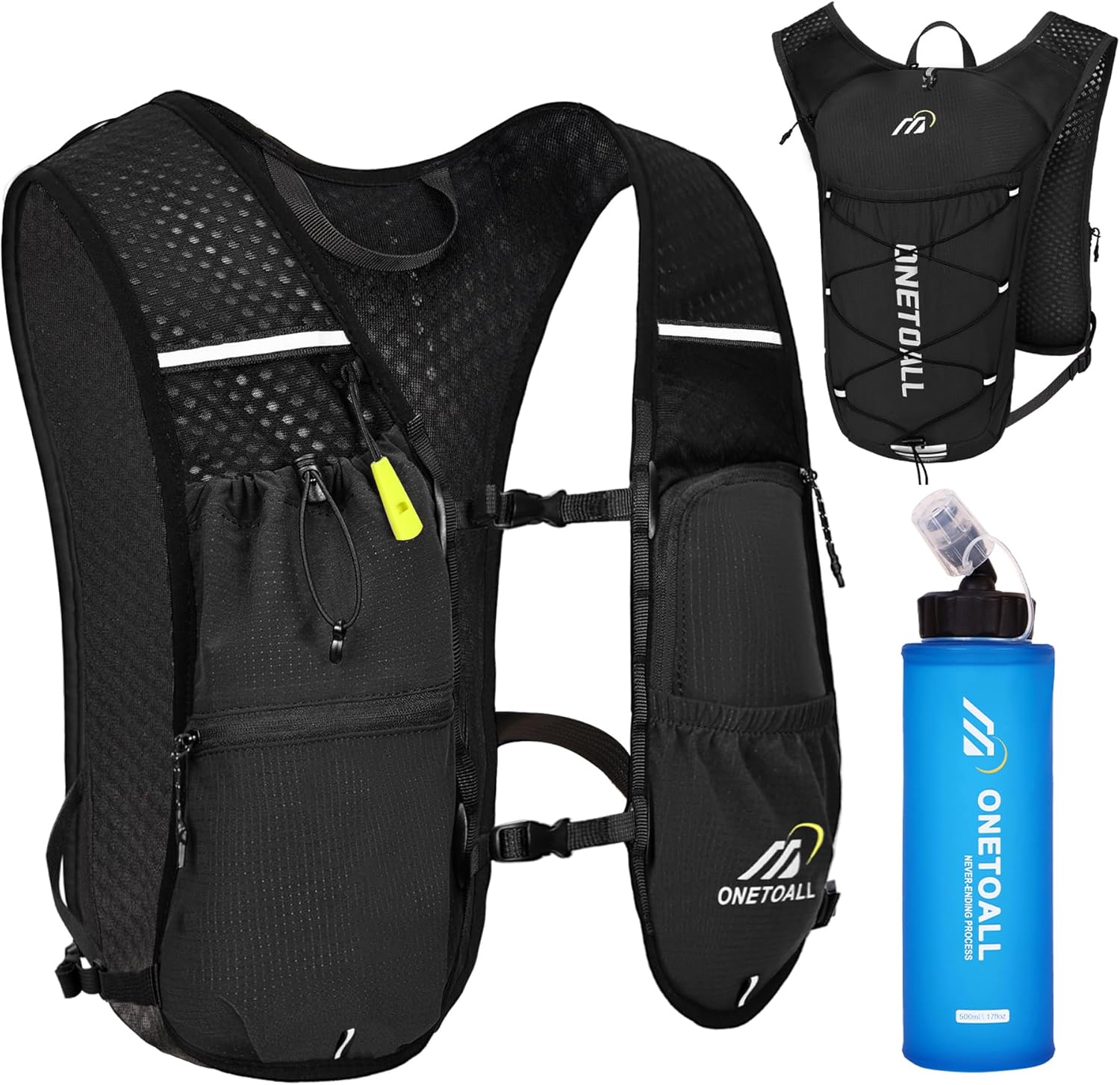 - ONETOALL Running Vest Hydration Backpack (6L) with 500ml bottle & 2L bladder, reflective trail vest
