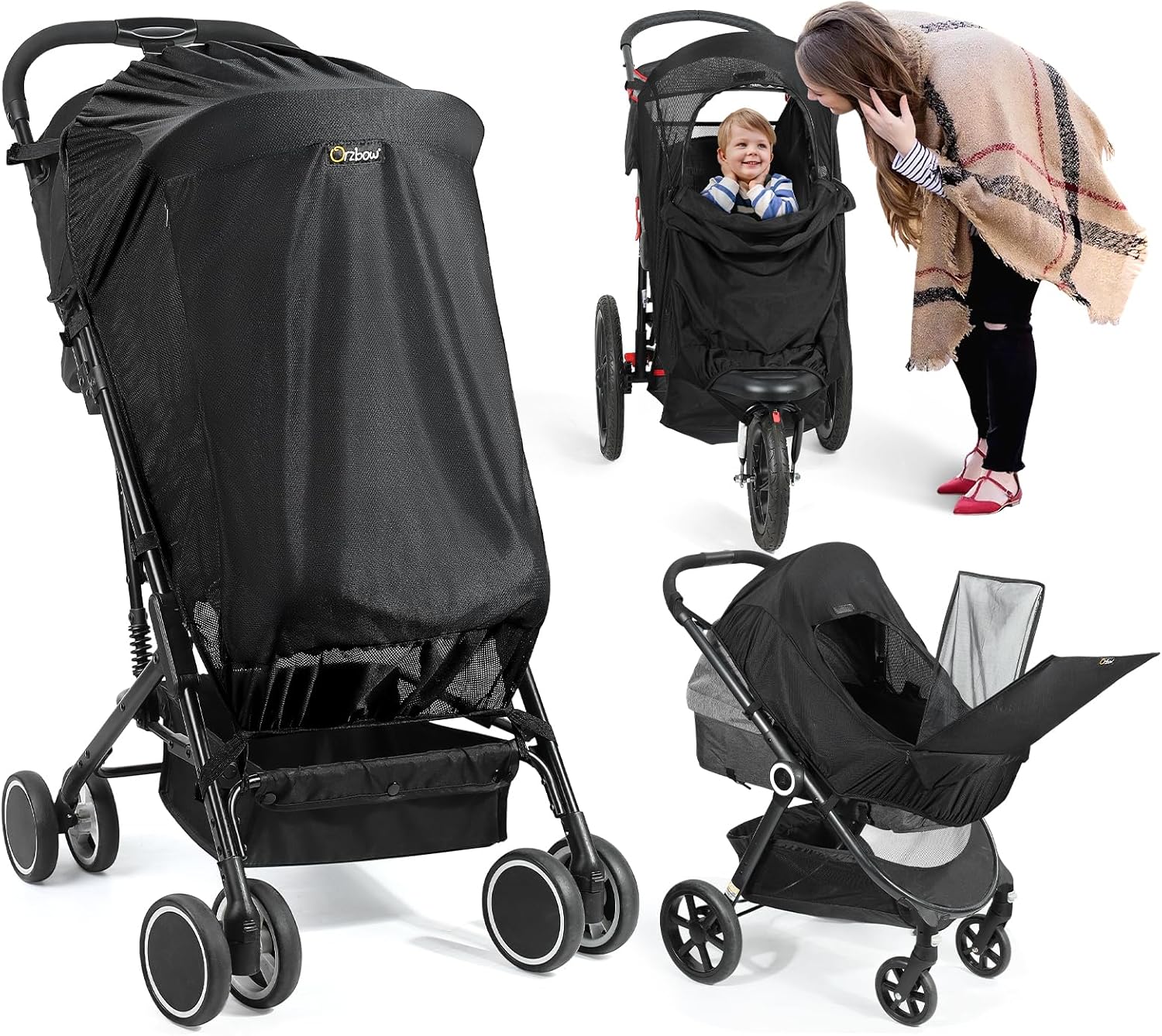 - Orzbow Universal Mosquito Net for Pram (Black) with UPF 50+ Sunshade & Two-Way Zipper