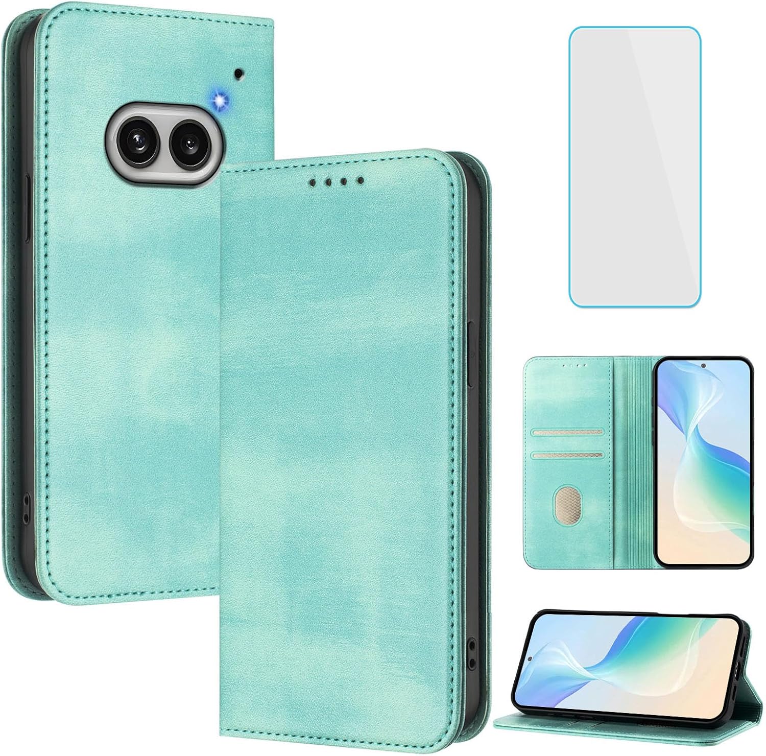 OUEAYIEN Nothing Phone 2a / 2a Plus 5G wallet case with RFID, flip cover & screen protector (mint)
