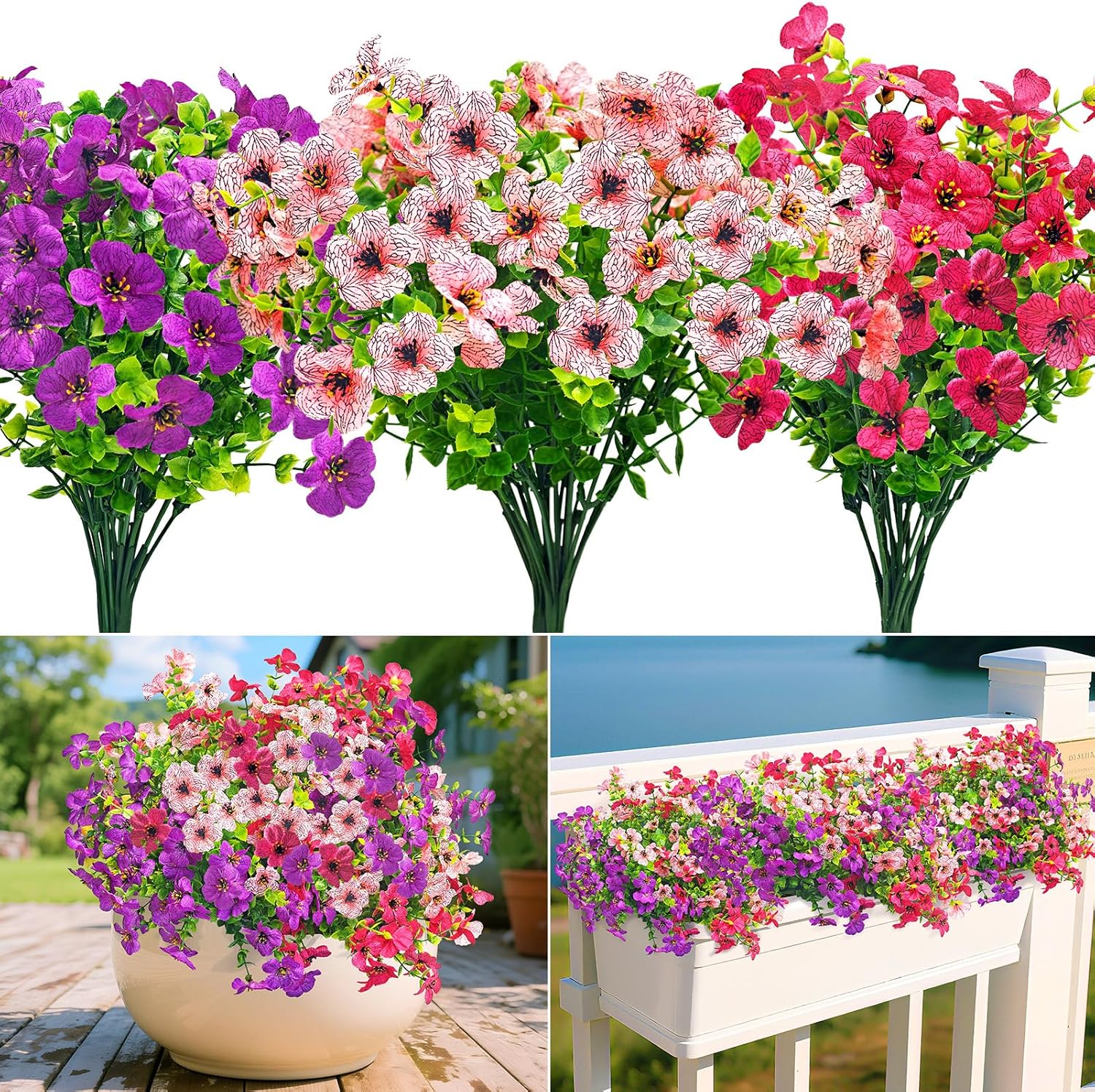It makes sense if you want: - low-maintenance décor for outdoor planters, porch displays, urns, or window-front styling - an easy, repeatable way to create a violet-themed arrangement using multiple bundles - colour that stays consistent without watering schedules