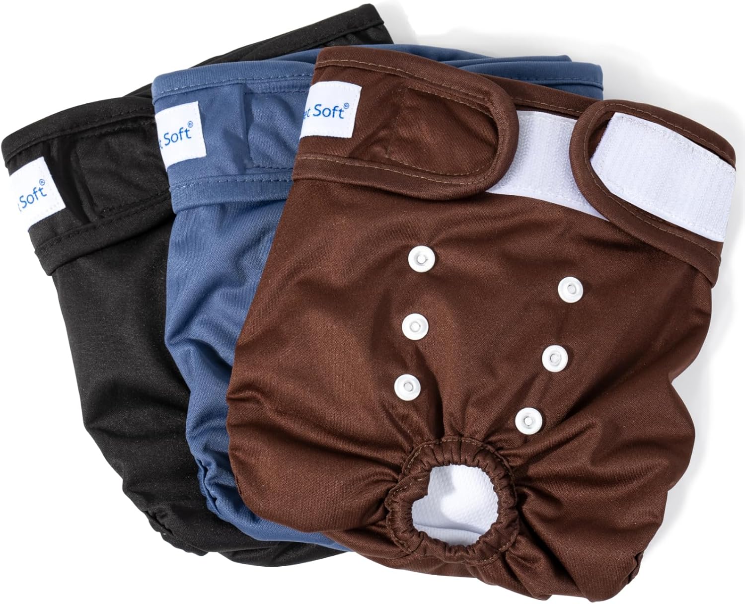 - Pet Soft Dog Nappies Female washable period pants – reusable incontinence & heat nappies, 3-pack