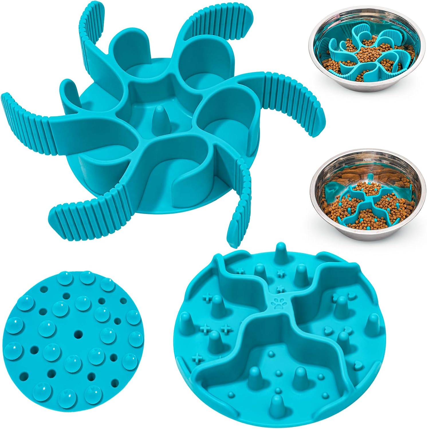 The essentials\n\nDesigned to slow down mealtimes and support comfortable eating, this PETDOGRE slow feeder insert set offers two adjustable configurations to suit dogs of different speeds and bowl sizes. The 4-section circular insert is ideal for beginners and helps establish a controlled pace, while the multi-grid option gives faster eaters a more challenging arrangement. Made from soft food-grade silicone, the inserts sit inside standard bowls and are gentler on the nose and tongue than rigid plastics. The two-pack format makes it easy to switch between configurations as your dog grows or as eating habits change, providing real value for households with more than one dog or for gradual training. With practical design features such as strong suction cups and a easy-clean surface, these inserts are built for everyday use in busy households, helping to reduce bloating and the risk of choking during meals. 🐶\n\nThe material choice matters here, as silicone offers a safer, more forgiving surface than hard plastics. The soft texture minimizes irritation while the non-slip suction keeps the insert securely in place on ceramic, stainless steel or glass bowls. This combination of durability and safety translates into a reliable feeding accessory that you can count on, whether you are dealing with puppies or larger breeds. By promoting slower eating, the inserts contribute to better digestion and a calmer dining routine, which many owners find beneficial after a busy day. If you value practicality and simple maintenance, you will appreciate how easily these mats rinse clean or go straight into the dishwasher. \n\nFor daily use, the inserts are designed to be trimmed to fit bowls with a 4.7 to 7 inch diameter, offering universal compatibility across a wide range of bowl shapes. They work with both dry and wet foods, so you can adapt to varying diets without needing new gear. The strong suction ensures the mat stays put during feeding, even with enthusiastic eaters, helping to keep bowls stable and reduce messy mealtimes. In terms of hygiene, the smooth surface resists residue build-up and can be cleaned quickly under running water or in the dishwasher. The practical design makes this a sensible addition to many dog households, delivering quiet, slower mealtimes with a clear emphasis on safety and simplicity. 🧼\n\nIf you value value-for-money, the PETDOGRE slow feeder inserts represent a thoughtful improvement to routine feeding. They are easy to install, adjust, and maintain, with the right balance of grip and flexibility to fit a range of bowls. The 2-pack design keeps options open as your dog’s needs evolve, encouraging consistent use and predictable meal times. In short, these inserts combine versatility with straightforward care and are suitable for puppies through to large breeds. You can rely on them for steady progress toward healthier eating habits, day after day.\n\nIt’s worth noting that while the inserts offer strong suction, you should ensure the bowl rim and surface are clean and dry before attaching the mat to maximise grip. If you prioritise a simple, durable feeding accessory that adapts to your dog’s pace, these PETDOGRE inserts deliver clear benefits in everyday use. The kit’s all-round practicality, combined with the non-slip design and adjustable configurations, makes slow feeding easier to sustain over time. 🐾
