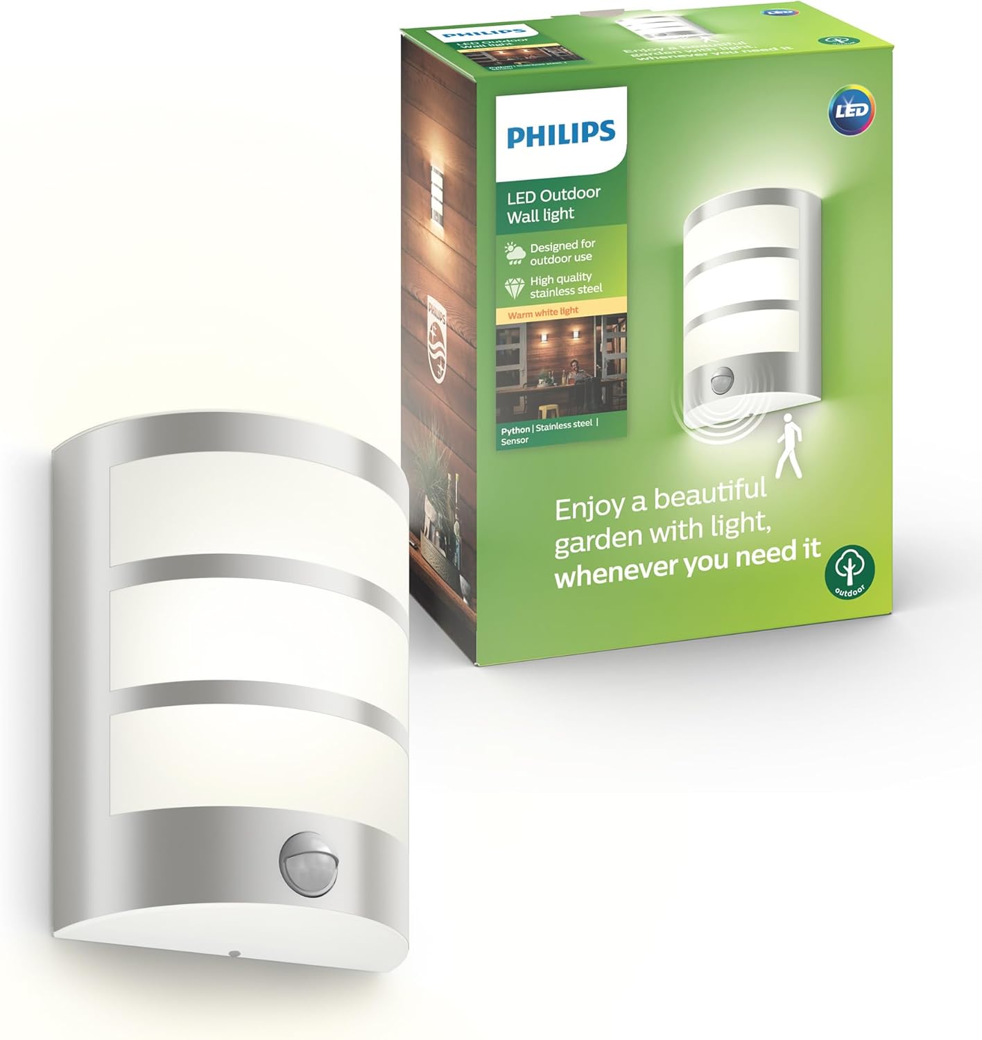 The Philips Python LED Outdoor Wall Light is an outdoor wall-mounted security-style light with a built-in infrared motion sensor. On paper, it’s aimed at making the outside of your home easier to navigate at night—think path edges, side returns, garage doors or any spot where you want light to come on when someone approaches.
