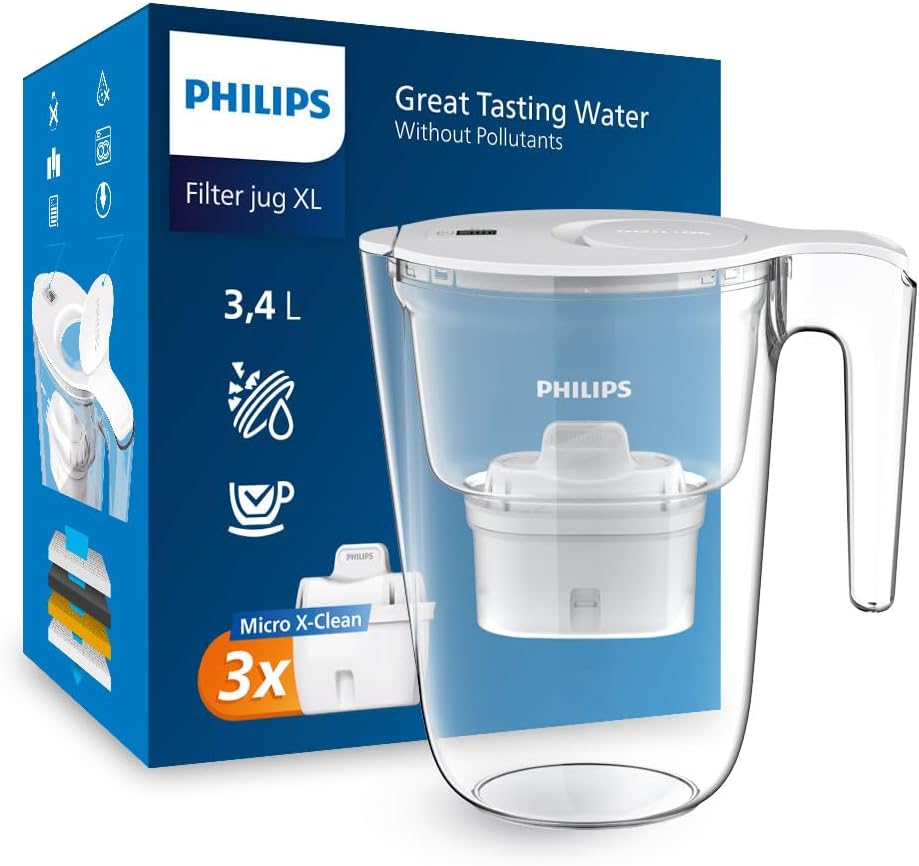 If you’re trying to improve everyday drinking water without turning your kitchen into a science project, a filter jug is one of the most straightforward routes. The Philips Water XL Filter Jug +3 Taste+ is the “big jug” take on that idea: it’s built around a higher-capacity reservoir (3.4 litres) and a digital reminder to help you keep the cartridges on schedule.