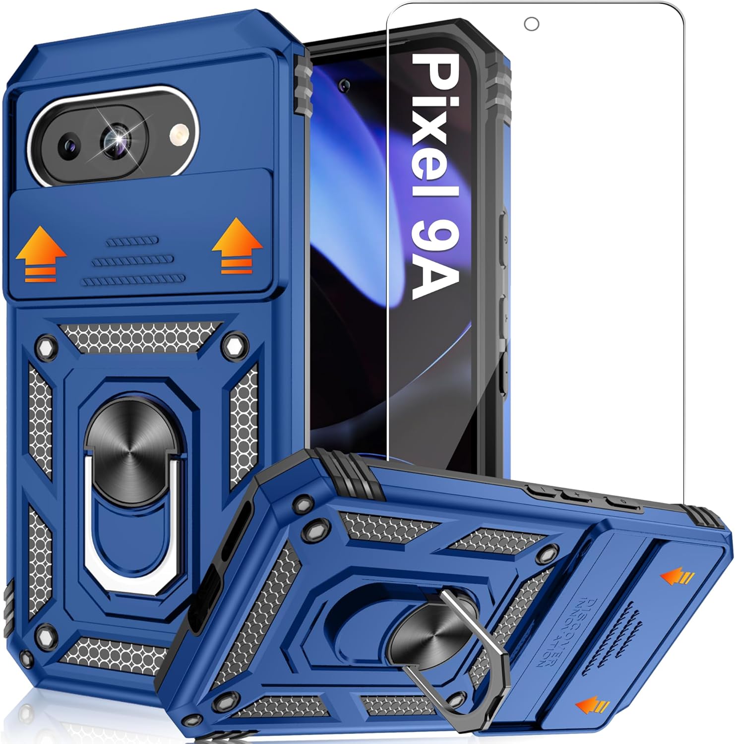 Pilaru for Pixel 9A Case with Camera Slide Cover, Built-In Kickstand & Screen Protectors (Blue)