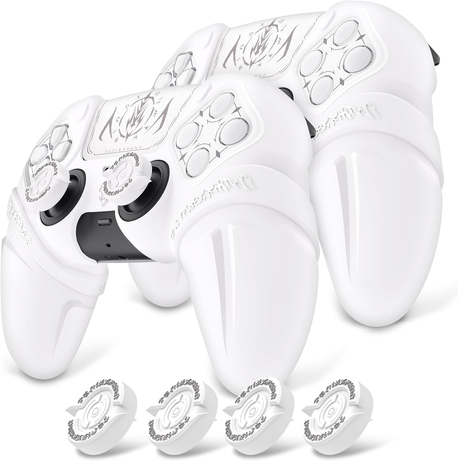 The soft yet resilient silicone improves grip and shields the controller from everyday knocks and marks. The runes motif is decorative but also adds micro‑texture that helps prevent slips during longer sessions. The thumb grips are included to boost control feel, and the touchpad sticker preserves the aesthetic while protecting the pad surface. A practical point is that the cover allows charging on the official dock without removal, which keeps downtime to a minimum.