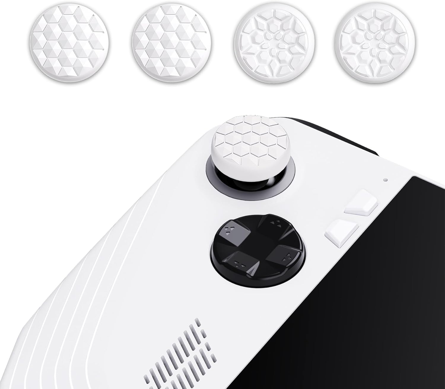 PlayVital White Thumbsticks Grips Caps for ROG Ally (Diamond Grain & Crack Bomb Design)