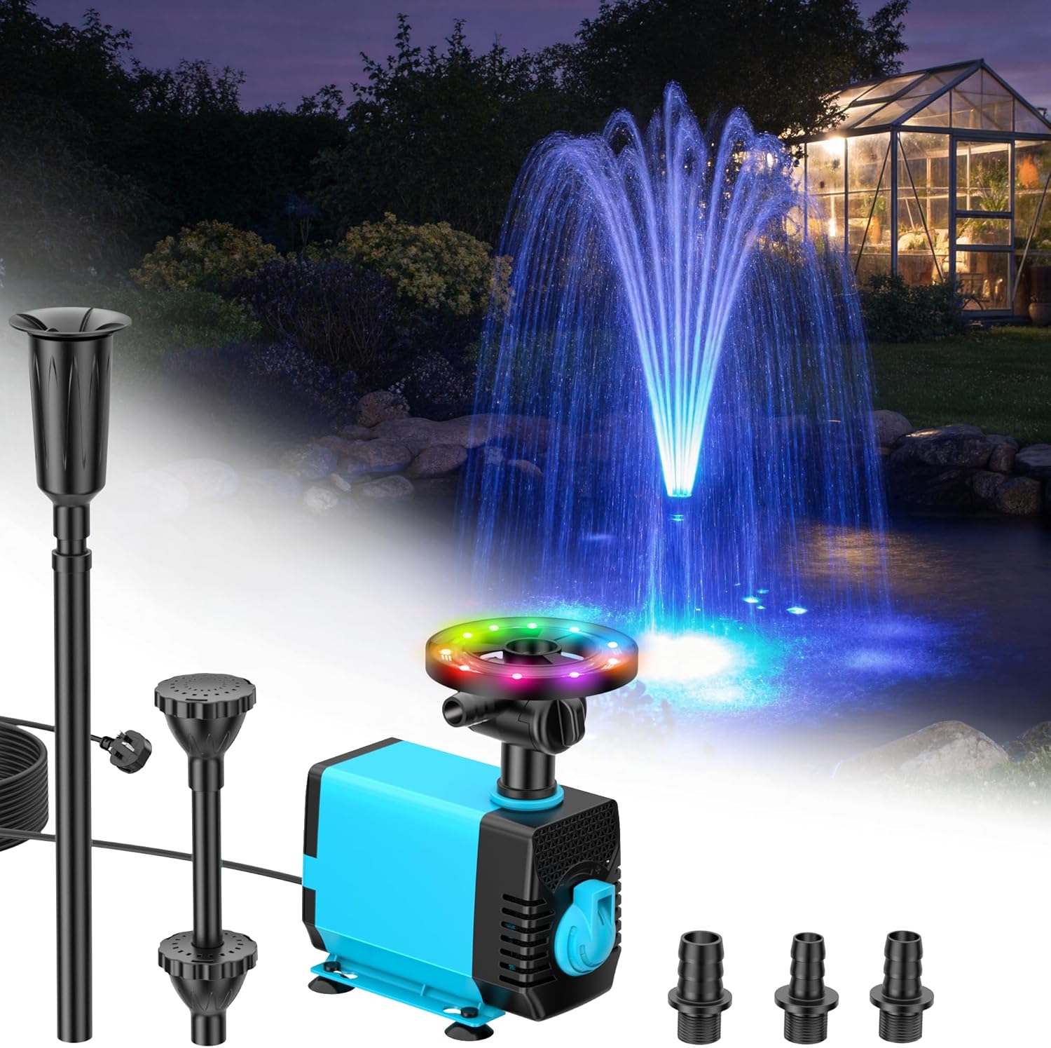 POPOSOAP Pond Fountain with RGB Lights (40W Submersible Pump, 2100 L/h) for Day & Night Pond Decoration