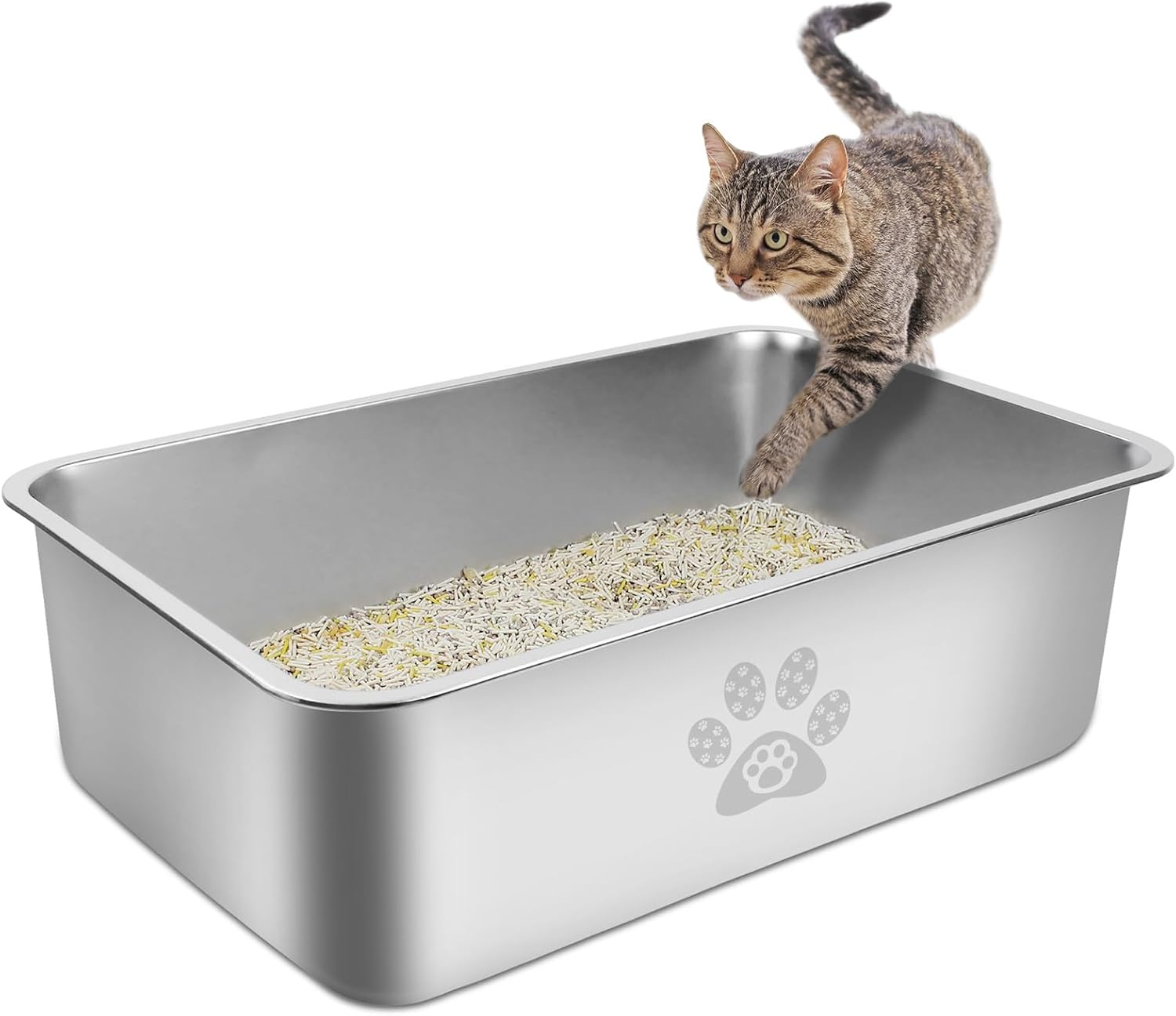 - Suhaco Stainless Steel Cat Litter Tray 45 x 35 x 10 cm 🐱