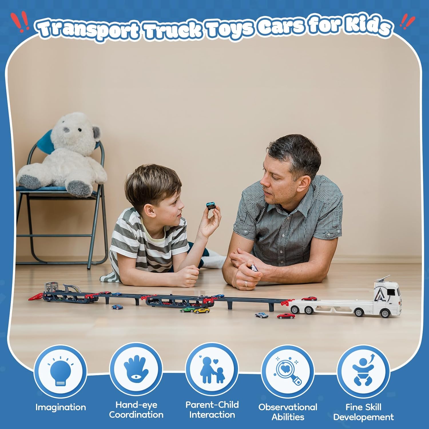 It’s a good fit if you want a car transporter playset that creates an extra-long track when extended, supports 1 or 2 players, and includes enough mini cars to keep the game varied.