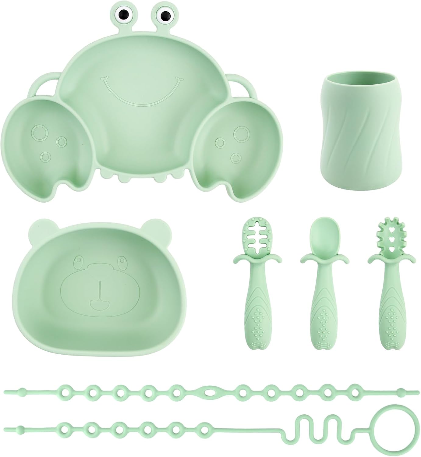 If mealtimes are turning into a small daily mess, a suction plate can help bring things back under control. This Qshare Baby Weaning Set focuses on a silicone suction plate with three divided sections, aiming to keep food separated and (in theory) harder to fling off the table. It also includes the kind of “starter” items many parents look for when moving beyond purees: bowls/spoons and a bib.