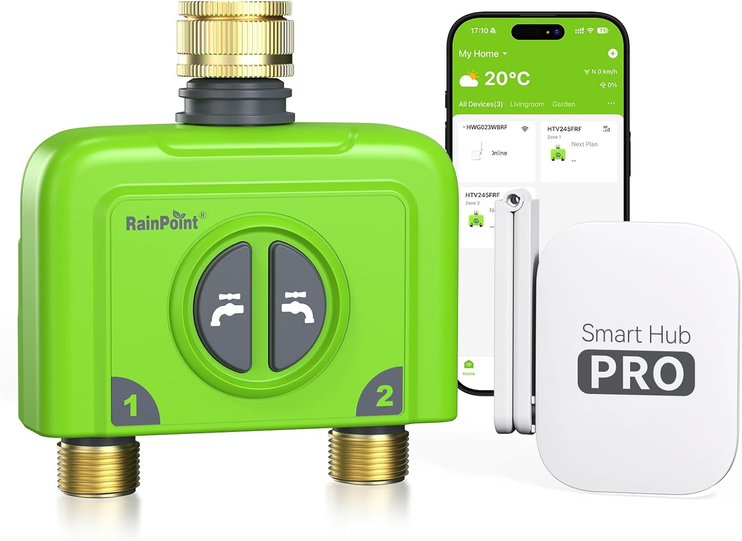 - RAINPOINT WiFi Water Timer with Antenna Hub (Brass Inlet) for Garden Irrigation