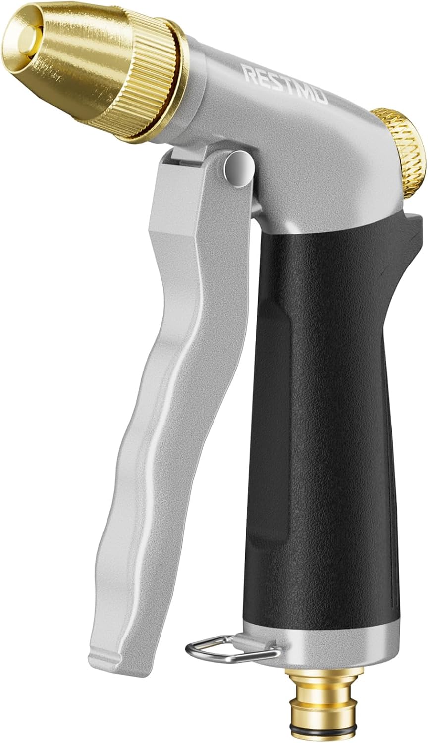 This RESTMO high pressure hose spray gun is a garden hose nozzle designed for tasks where a basic trigger sprayer can feel a bit underpowered. The headline, on paper, is the build: an all-metal internal structure (zinc alloy) with a solid brass spray head, aimed at resisting rust and coping better with impacts and higher pressure than lighter plastic options.