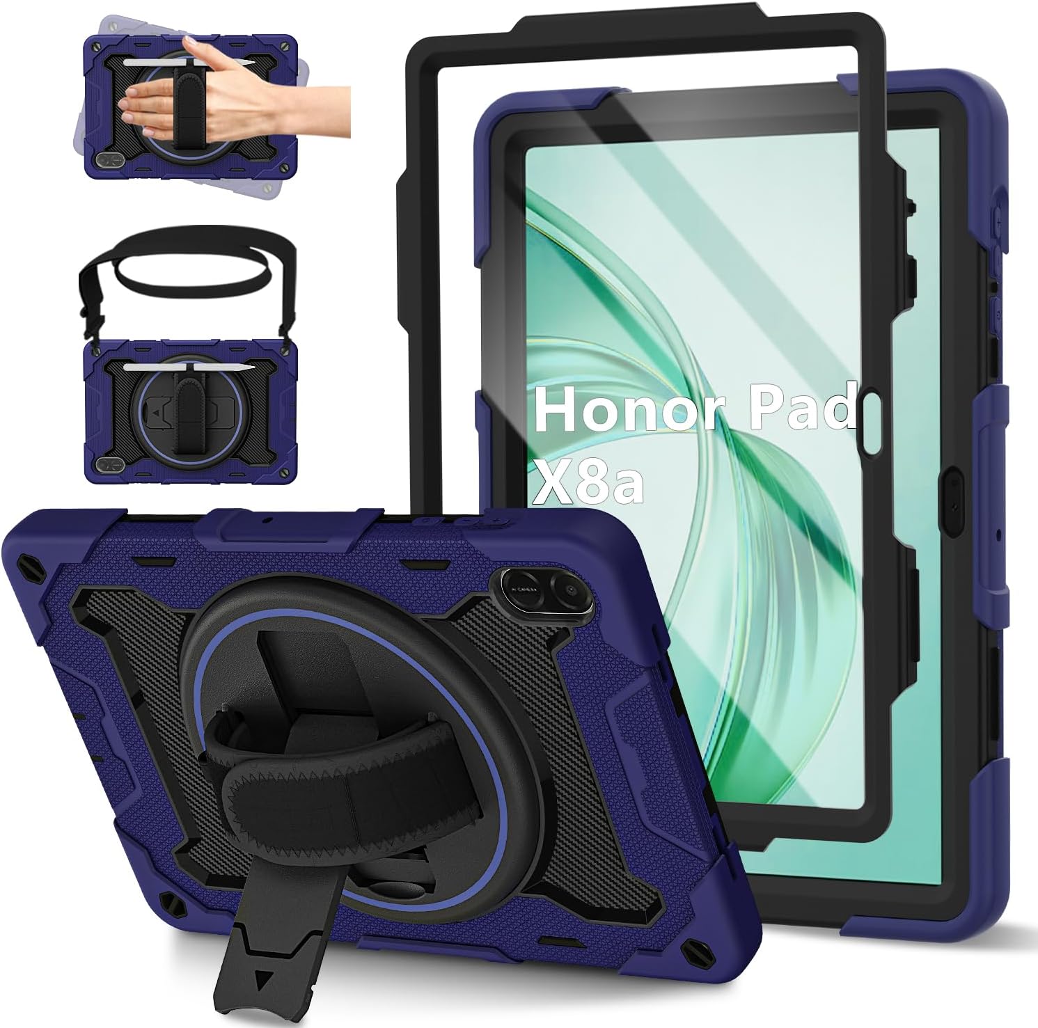 If you’re looking at the Honor Pad X8a 11 inch (2024) and want something more “daily-proof” than a basic shell, the ROSROME case is built around that exact use: full coverage for the tablet and a kid-friendlier way to hold it. It includes an HD screen protector, a 3-layer body design and a 360° rotating stand, plus multiple carry options (including a detachable shoulder strap).