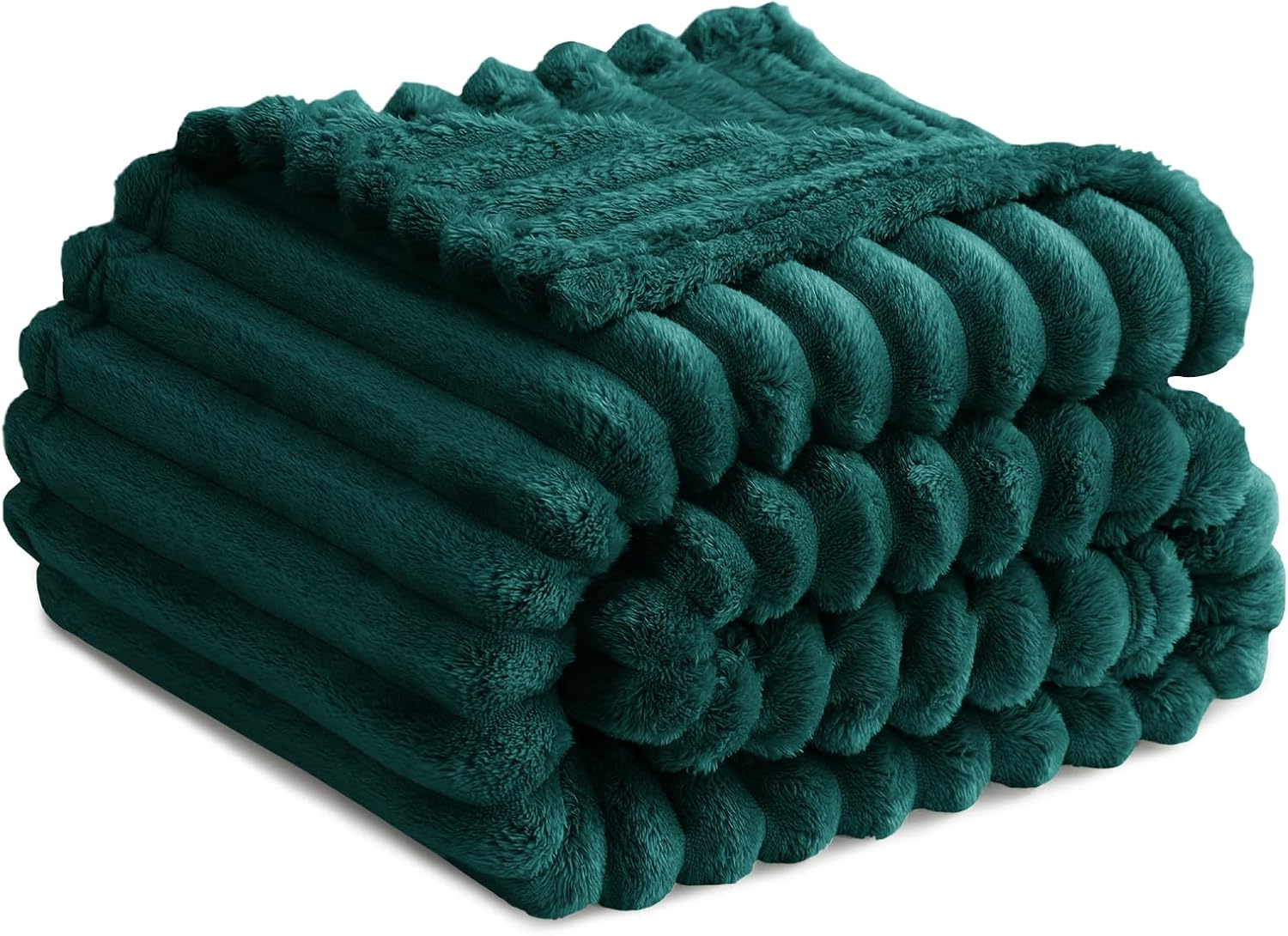 RUIKASI Fleece Throw Blanket for Sofa (130x150cm) – Fluffy Emerald Green ribbed sofa throw