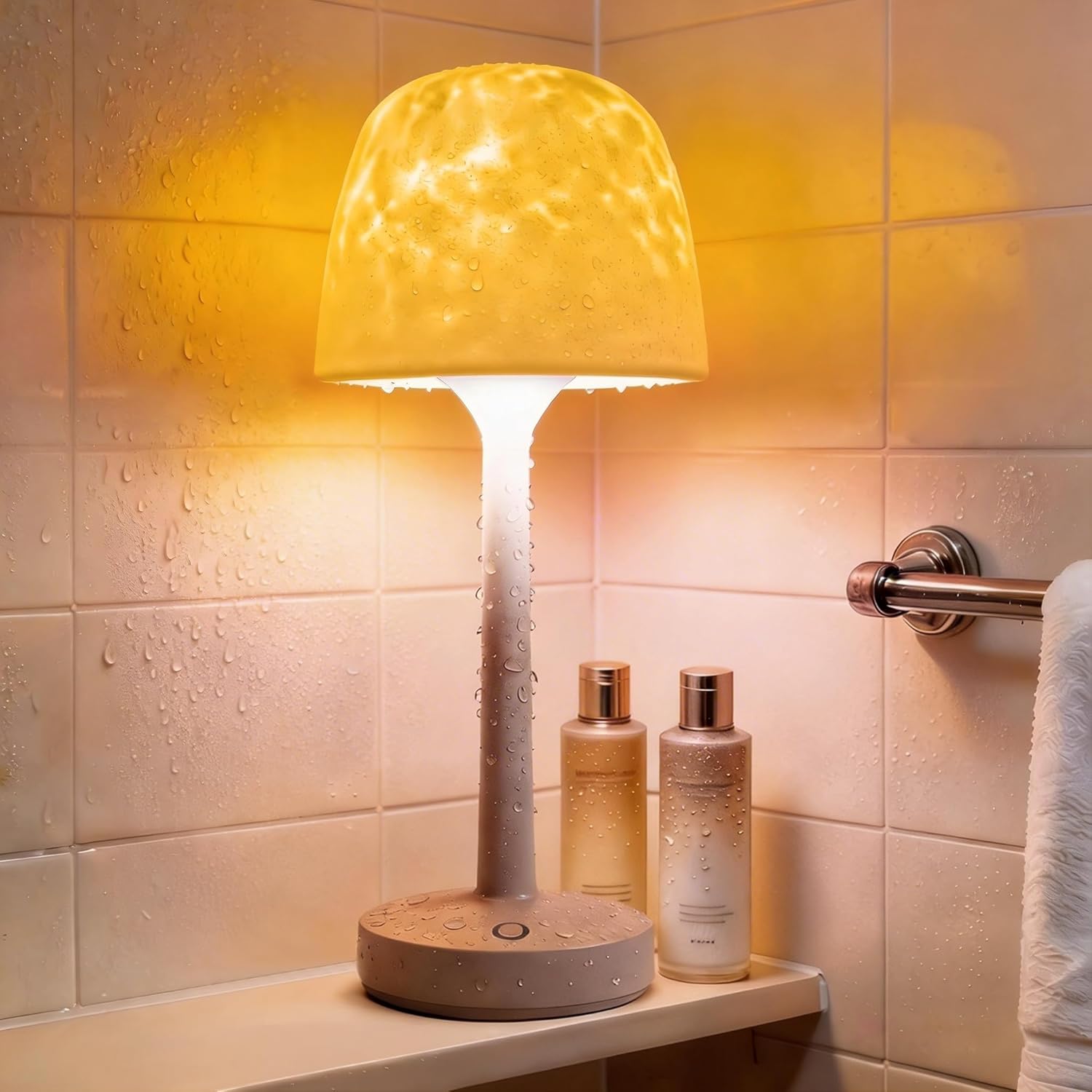 This is a rechargeable, cordless shower light designed for use in bathroom conditions like humidity and splash exposure. It’s also more flexible than a basic night light because it combines two modes: a standard steady light and a projected “ocean wave” effect once you remove the shade.