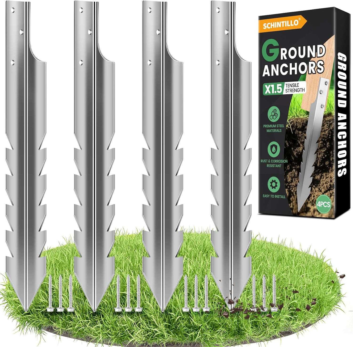 SCHINTILLO Ground Anchor Fence Post Spike (4 Pack) for Wooden Play Towers & Swing Posts