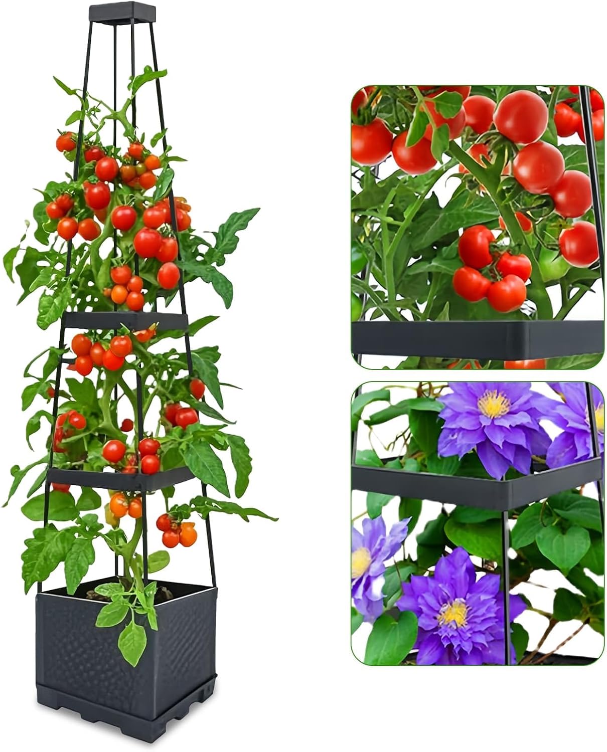 This planter makes the most sense if you want structure without complicated setup. The detachable, height-adjustable trellis cage is a practical advantage for training tomatoes and other climbing plants, especially if you like to adjust supports as stems thicken.