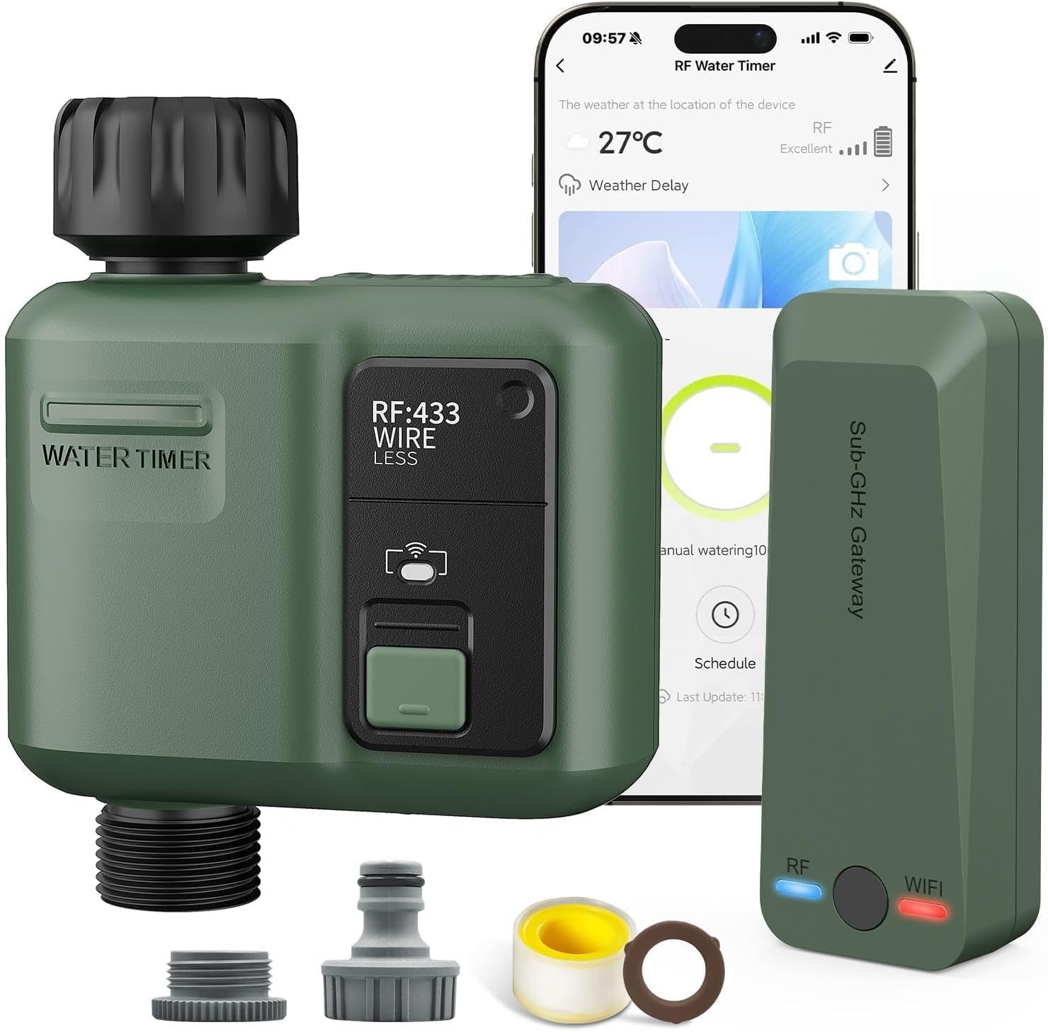 On paper, the big differentiator is the way it reaches the hose timer: it’s described as having a long-range RF range of 984ft/300m, supported by an RFID gateway approach (rather than relying purely on short-range Bluetooth). That’s the kind of detail that matters if your garden is larger than a typical “stand next to the router” scenario.
