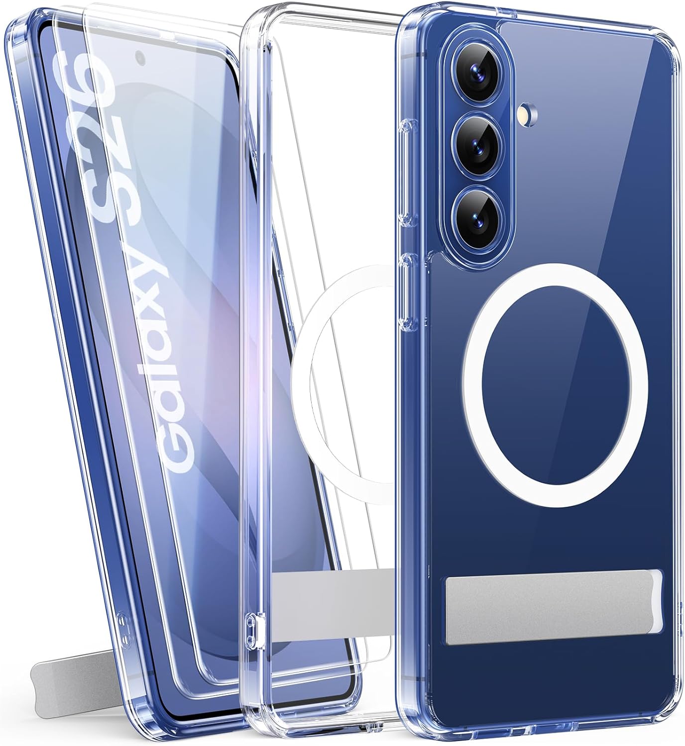 SIXBOX Magnetic Case with Kickstand for Samsung Galaxy S26 (Clear) – MagSafe compatible with 2 tempered glass screen protectors
