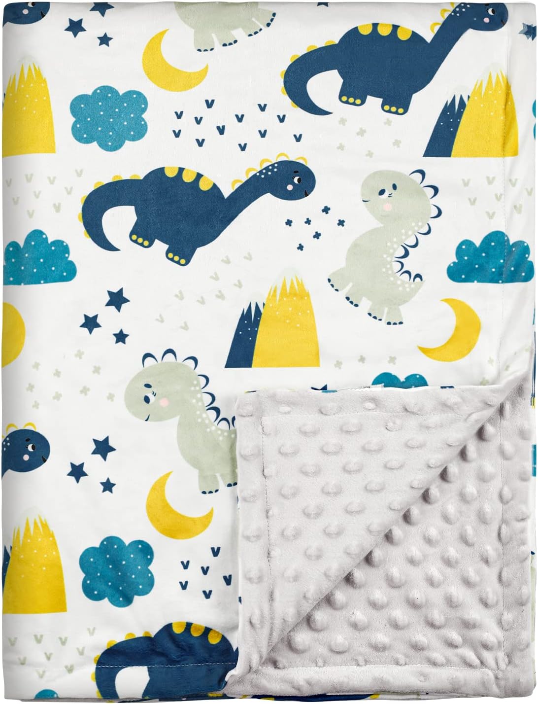 Soarwg Kids Baby Blanket Newborn Gifts (75x100cm) - Soft Plush Duvet with Dotted Backing (Dinosaur)