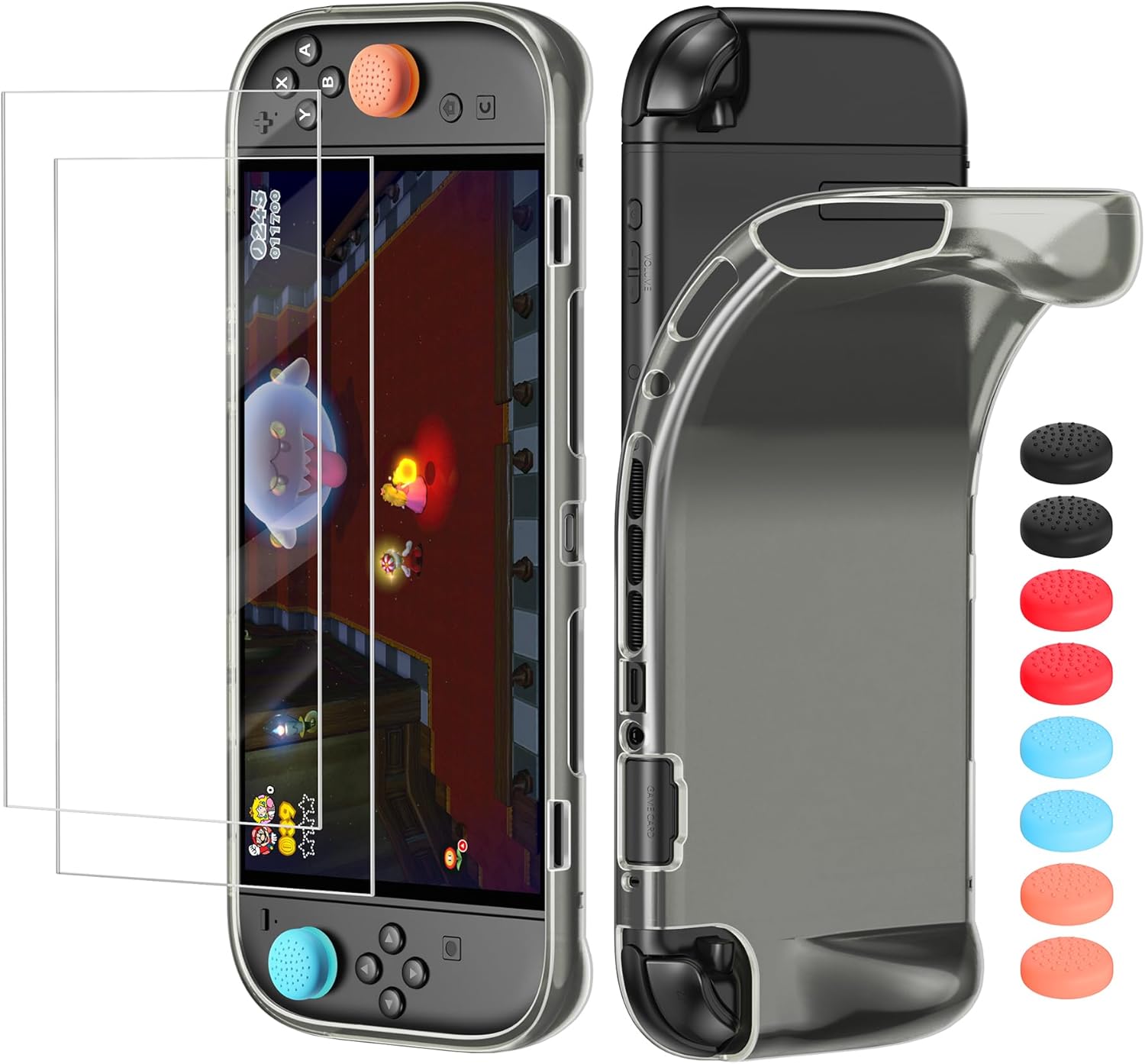 This is a good fit if you want a bundled, everyday protection approach for Nintendo Switch 2 (2025): a TPU case for the body and edges, plus tempered glass screen protectors with anti-glare and oil-resistant coating, and extra thumb grips for comfort. If you frequently carry your console around and you’re trying to avoid the usual scratches and fingerprint smudges, it makes sense.